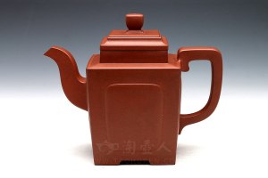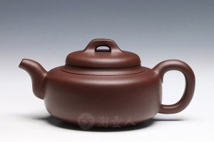 潘持平,男,1945年生于宜兴,2005年研高,江苏省工艺美术名人。师从名艺人徐盘大、陈福渊学艺,后得顾景舟大师指导,1958年进宜兴紫砂工艺厂,尤擅长紫砂壶方器造型,有“当今紫砂方壶佼佼者”的美誉。采用泥料为原矿底槽清制作而成的,壶容量为680毫升,此壶棱角分明,脉络清晰,四方平盖,方砖壶钮,磊落大气。整器线条挺括、协调有力、折角交代清晰,面线结合爽利。四方型的壶身虽以方位基础,却不呆板凝滞。上丰下敛,气韵端庄不俗。弯流壶嘴和方形把对应成趣,虚实结合的技巧让人叹服。