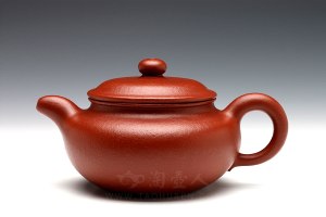 惠祥云,男,1968年出生于宜兴制陶世家,为明代制壶大家惠孟臣第十五代传人。自幼随父亲学习制壶,后得多位紫砂名家指点,根底扎实,工艺突出,对紫砂有着很深的感悟,被藏家称为“民间紫砂大师”。其作品不论是选料、造型,还是制作工艺,都可圈可点,精美绝伦,没有丝毫粗制滥造的痕迹,具有较强的艺术欣赏和收藏价值。此壶采用了原矿大红袍朱砂,壶容量为300cc,此器端庄大方,沉稳内敛。壶身扁圆,蓄势待发,矮直颈,壶盖向上鼓起,口盖吻合严密;圆珠钮、短弯流、出水流畅,耳形把敦厚肥大,握手合适。盖款『惠祥云』