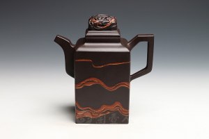 孔春华,1959年出生于江苏省宜兴陶艺世家,2017年高工,当代紫砂名家,1992年调进紫砂工艺厂研究所从事创新设计,1990年与姐弟推出“孔家壶”品牌,2005年入编《世界名人录》。印章,是中国的传统文化之一,也是古代权力地位的象征。此器以印为题材,故名《中国印》。壶身呈筒,修长俊逸,自壶底伸长至壶肩,线条流畅,切面干净;壶肩边角清晰,坡度平缓,压盖吻合严密,与壶身呈阶梯状,层次分明,视觉效果强烈;盖上以两条酣卧的蟠龙为的子,雕琢细致,犹如玉玺,气势逼人;方形流把线条明快,更添淳厚质感。运用绞泥