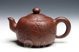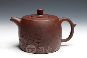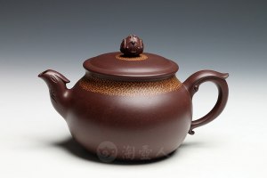 采用了原矿黑泥制作而成,壶容量为400cc,细观此壶,壶身犹若玉璧,精致美观,弯流壶嘴,暗接精湛无痕,出水流利;耳形壶把与嘴对称,宽和大气,持握舒适,桥形壶钮,拿捏方便,壶嘴,壶把,壶盖和壶钮与壶身的衔接,精美和谐,浑然一体,精细的做工,使得该壶色泽清亮,细腻柔和,从神韵上展现了玉器特有的气质和内涵,气韵非凡,意味无穷,耐人寻味。