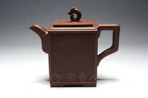 此壶柱形壶钮,自壶钮处两条曲线缓慢落下,壶肩微削,整个壶形线条流畅优美,犹如一位端庄的古典美女,壶嘴似一条水袖喷薄而出,壶把则是另一条胳膊轻轻叉于腰间,姿态婀娜万千