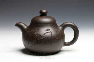 此壶采用了原矿青灰泥制作而成,壶容量为220cc,壶钮以豹饰之,壶嘴似豹的头,壶把似豹的尾,壶身与壶钮相呼应,方器成型难度大,棱角分明,费时费工,造型新颖,如豹子飞奔在大草原中,寓意勇往直前。