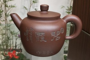 采用了原矿紫泥制作而成,壶容量为470cc,壶身造型圆润细致,长短比例适中,稳重且不呆板,压盖简练,圆柱形壶钮,拿捏舒适,线条厚重十分出彩,壶嘴是持重的代表,粗细渐变最为突出,但又短小精致,甚是巧妙,壶把起势雄浑,收尾利落,毫无累赘,整件作品大起大落中见灵巧,但配合在厚重的壶身上却更显可爱非凡。