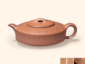 清代名家惠孟臣所制朱泥孟臣壶,属清早期珍品,其梨皮砂质温润,扁圆壶型宜把玩,刻字虽小于绿豆却精绝,更获紫砂泰斗顾景舟盛赞,是藏家追捧的紫砂瑰宝。