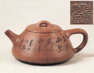 所谓款识,指的是紫砂壶艺人在壶上留下的名号,或者其他标记,分为印章和刀刻两种。款识是紫砂壶艺术的重要组成部分,起着画龙点睛的作用,紫砂壶款识本身也是金石篆刻艺术的一种,清朝的“西冷八大家”就是这种艺术的代表。