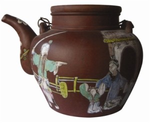 紫砂壶的起源一直可以上溯到春秋时代的越国范蠡,已有两千多年的历史了,文人的参与更是使紫砂身价倍增,在这些紫砂壶中,紫砂壶身上的诗词书画、文学篆刻,既是装饰层次的提升,也是文化内涵的深蕴。现推荐几款清代加彩紫砂壶。