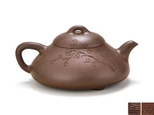 紫砂曲壶是1988年初,由汪寅仙大师和中央工艺美术学院张守智教授共同合作设计的。其创作,突破了紫砂壶艺的传统规律,是现代陶艺在紫砂陶艺中的体现和尝试。