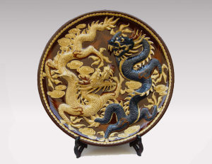 均陶产品以釉色瑰丽多彩而闻名,在它上千年的发展演变中,与之相匹配的贴花装饰技法也在明代后期开始形成,现存于宜兴陶瓷博物馆的“龙头荷花缸”就是早期平贴技法的代表作,作品周身外表贴有牡丹、茶花、菊花、梅花,寓意吉祥平安。