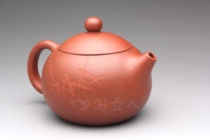 程寿珍号冰心道人,他在“大亨掇球”与“友廷掇球”的基础上更大胆地三度创新,壶身更圆更丰满;壶口再放宽,壶颈再度拉高更显精神充沛;壶盖极度夸张,呈饱满的半圆球;壶钮圆珠适度放扁,在视觉上让壶盖的张力充分展开;壶嘴增加曲线的弯度;壶把飘逸舒展中见好就收,形成了一个 “耳朵”形曲线的优美空间,各部比例协调,多一分则累赘,少一分则缺憾。整体造型古朴敦厚、秀美醇和,壶钮、壶盖、壶身在视觉上形成了三“球”重叠之势。