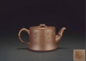 而在紫砂陶艺中变现书法艺术,最主要的一方面就是通过书法的线条与紫砂壶作品的造型、色彩、材料等有着内在的一致与融合。