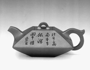 ---咸国英雪华壶一、感悟陈曼生【1】 圣手天心大雅人, 钟情紫玉涤凡尘。 平陵有庆桑连理,【2】 蜀麓好为壶制铭。闭佳构玲珑方却月,【4】 奇思烂馒复横云。【5】龚时但领风骚去,【6】更显才情二百春。二、顾景舟逝世十周年祭 [7]沧茫艺海惯遨游, 揽月追风一劲舟。 谈笑邵时惟兴会,[8] 往还云粟每勾留。[9]雪华蕴藉华千树,[10] 提璧雍容璧一流。[11]泰斗横空弹绝调, 凭谁壶曳说从头?注:[1] 陈受生(1768-1822),