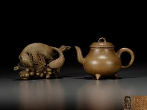 冯桂林(1907-1945),宜兴蜀山人,民国时期紫砂艺人的杰出代表之一。他不仅精于壶艺,还有观音等佛像、三脚蛤蟆等雕塑作品传世,可惜英年早逝,年仅39岁。