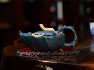 青灰泥,又称“藏青灰泥”,制壶者称之谓“青灰泥”,古云“天青色”,为明末清初广为流传之泥料;近年来开采量少,故成品甚稀;呈深紫灰色调,因满布颗粒,触感特殊,玩家喜呼“鲨鱼皮”,以烧成色命名之,较易与墨绿