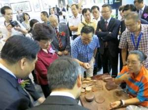 8月24日,在中国工艺美术大师鲍志强和江苏省宜兴紫砂工艺厂厂长徐建荣的带领下,携毛国强、曹婉芬、华健、吴亚克、蒋丽文、周琴娣等众多大师高工的力作参加江苏省人民政府主办的“江苏产品万里行香港展览暨经贸洽谈会”,在香港会展中心举行。
