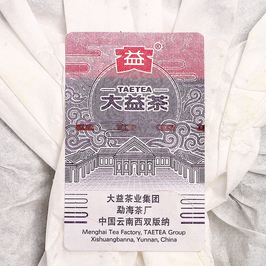 大益普洱,以勐海茶区大叶种晒青毛茶为原料,采用“大益茶制作技艺”制作而成。圆润薄饼,易撕宜泡,以肥壮茶菁为料,色泽乌润显芽毫。汤色黄亮;香气醇正,茶果香浓郁;滋味醇厚,回甘明显,综合品质高。