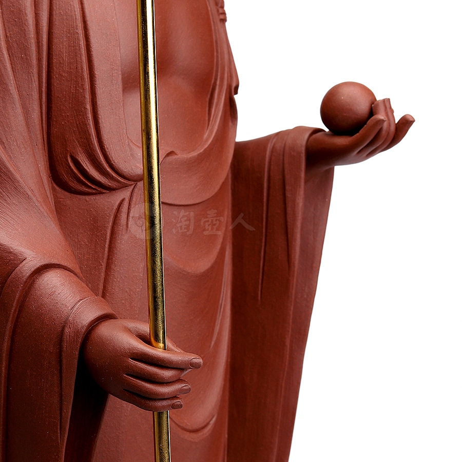 王俊峰,男,生于宜兴丁蜀紫砂世家,实力派陶艺家,1990年毕业于江苏陶瓷专业学校,随后赴北京中央工艺美院进修,主修陶瓷设计和装饰艺术,逐渐形成个人创作风格。2001年创办“藏珠阁”紫砂工作室,其作品以紫砂雕塑、紫砂花器见长,代表作有佛像系列,树桩、梅桩等仿生器系列,技法成熟,功底扎实,意蕴悠远,富有趣味,多件作品入选《中青年杰出陶艺名家》、《茗壶赏析》、《壶史》等书刊,深受海内外藏家喜爱。