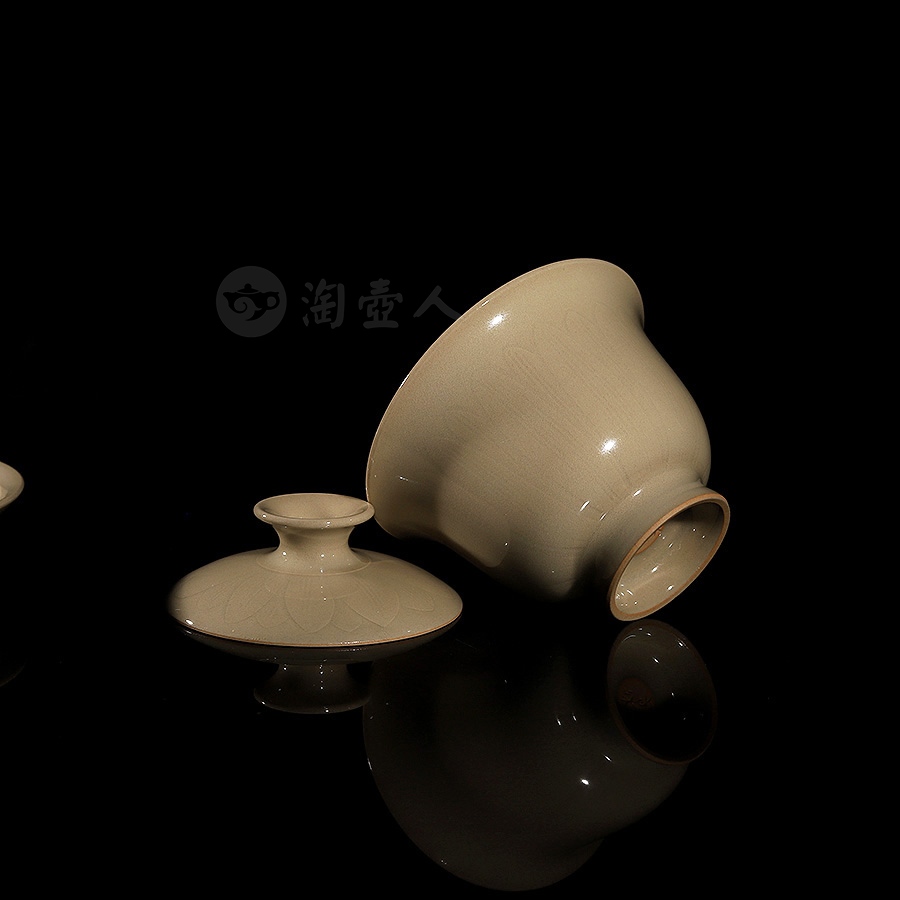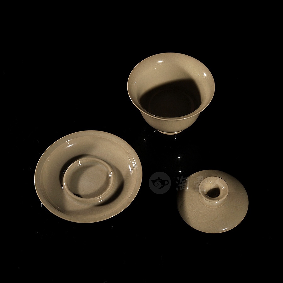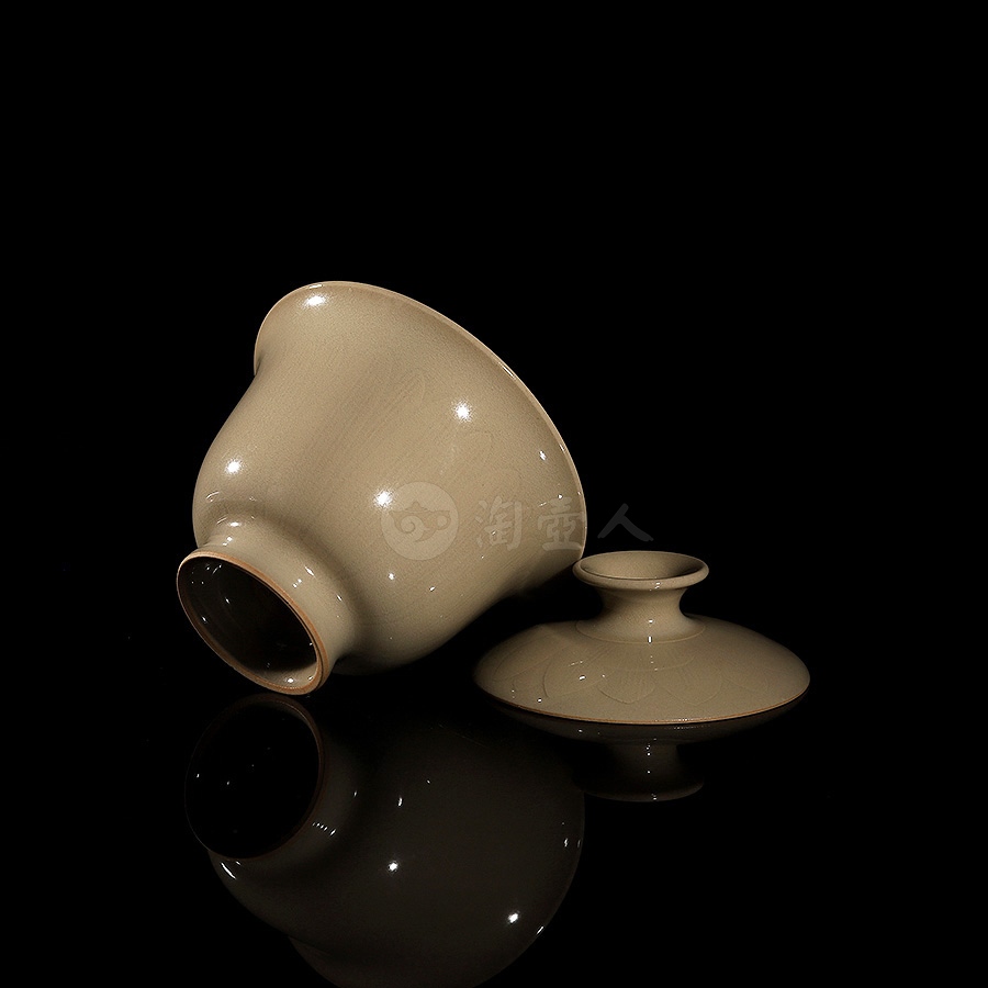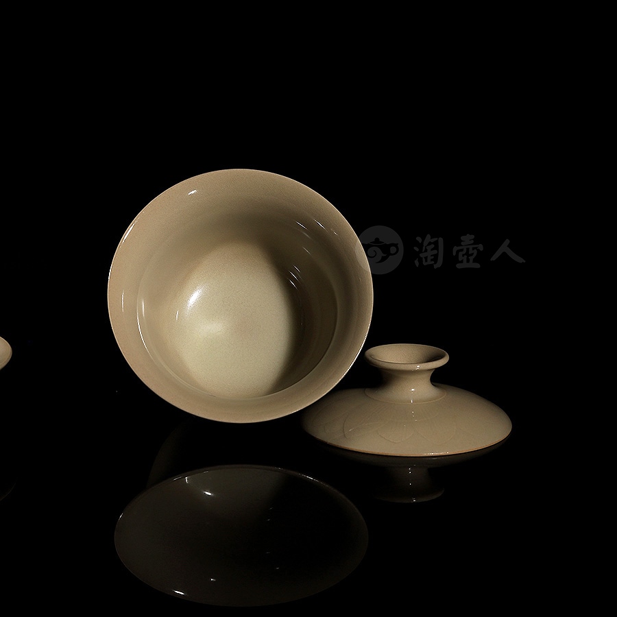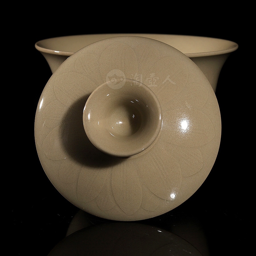 首页 龙泉窑 陈勇制《米黄釉御莲盖碗》