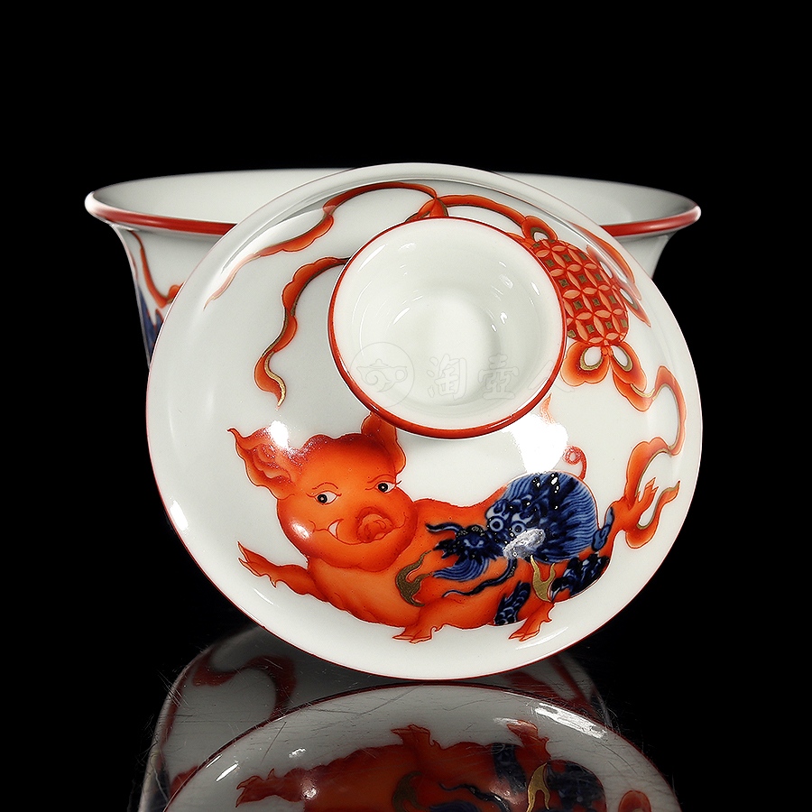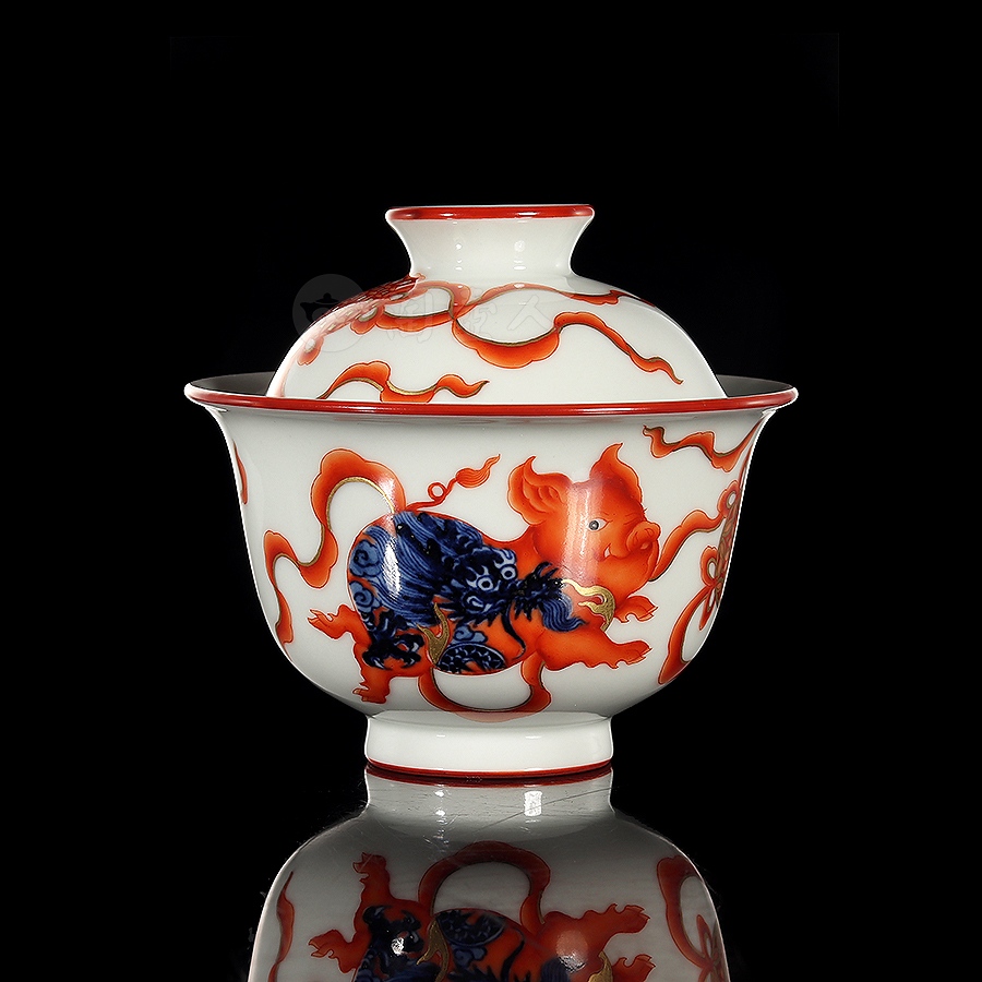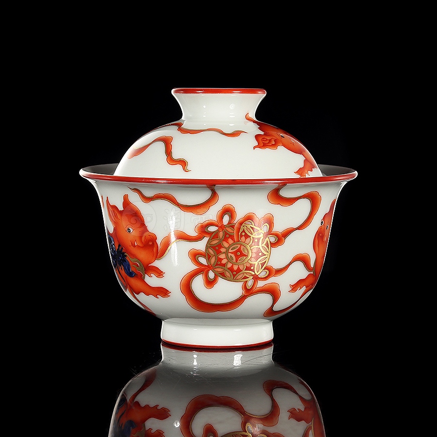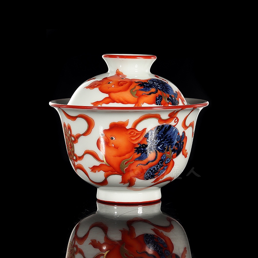 首页 盖碗 梁峻制《龙猪长乐盖碗》