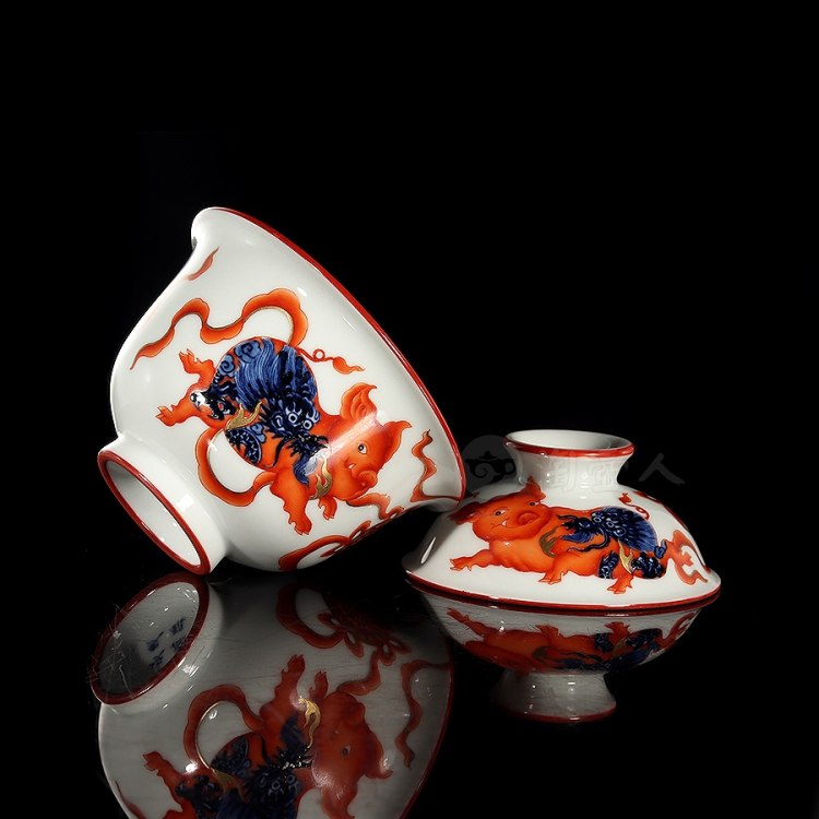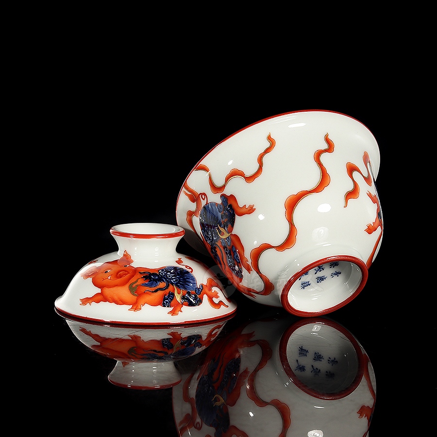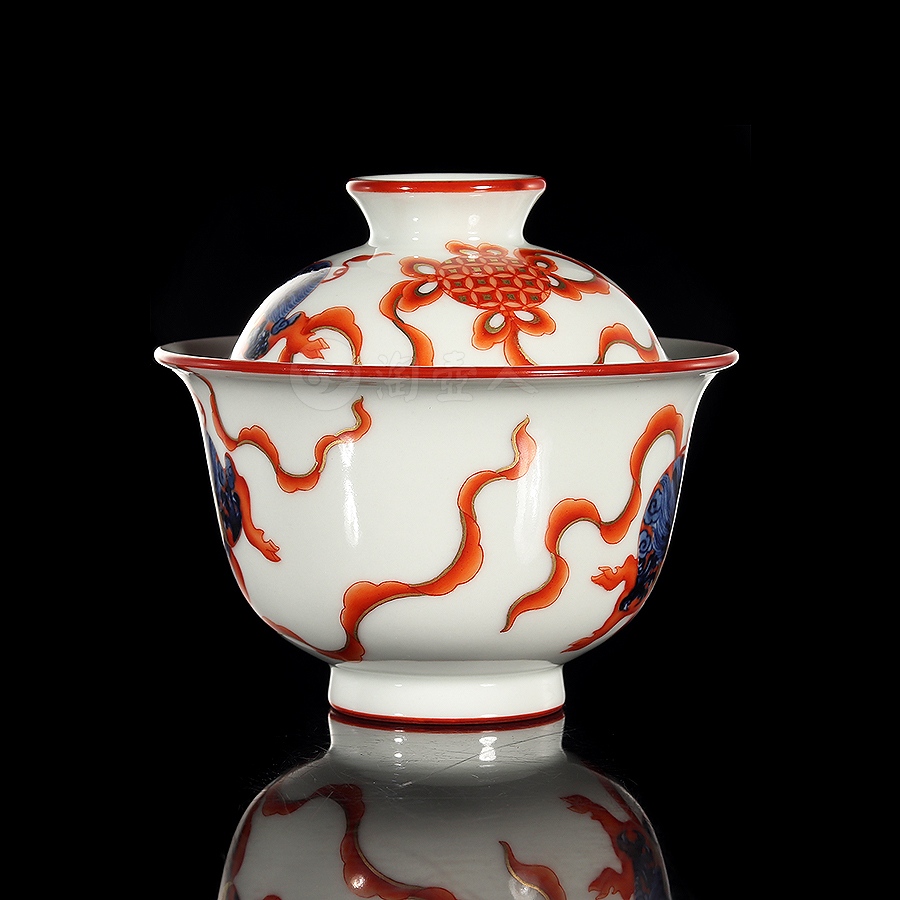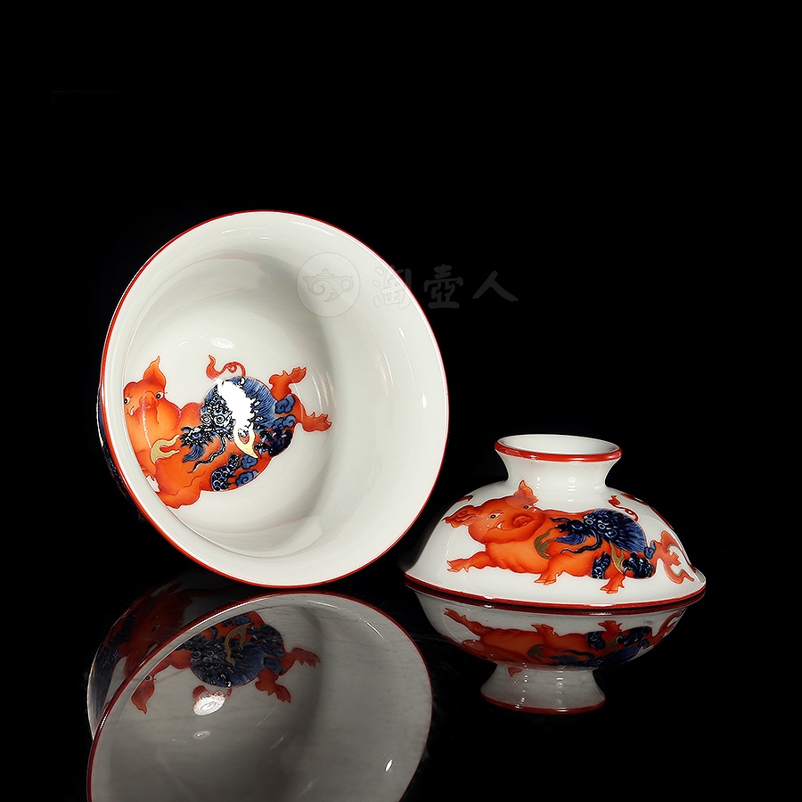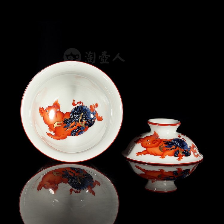 首页 盖碗 梁峻制《龙猪长乐盖碗》