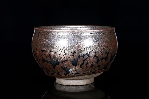 张静(建盏)·敞口金油滴盏