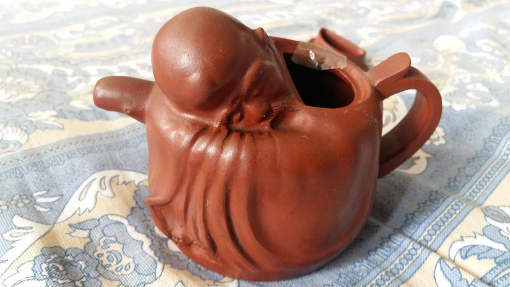大约在八十年代左右在人民日报上看到一篇文章,大概内容是徐汉棠在火车上偶然看到一个睡觉的老人,突发灵感制作了这把壶,当年家中老人看到文章后就去了宜兴紫砂壶厂买下此壶,想请各位专家鉴赏此壶是否为徐汉棠制作