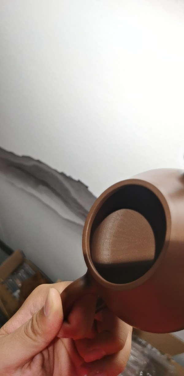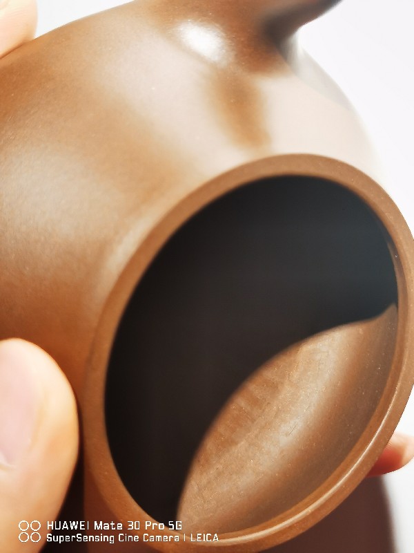 可以看到壶底接缝线,看不到壶身接缝线,内壁过于光滑,大概率半手