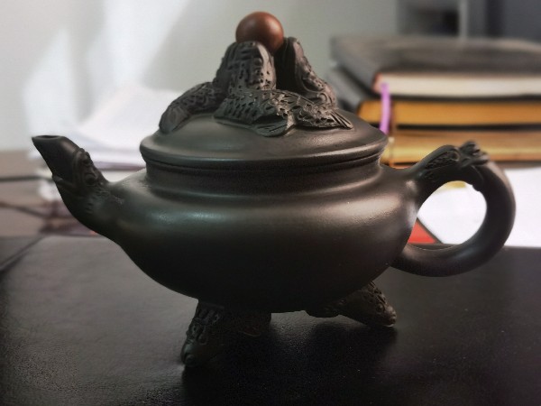 懂得入,看看这是什么壶?泥料?作者?自然光线下基本是黑色,遇水变青黑,挂水匀,慢干,灯光下泥料有荧光感。