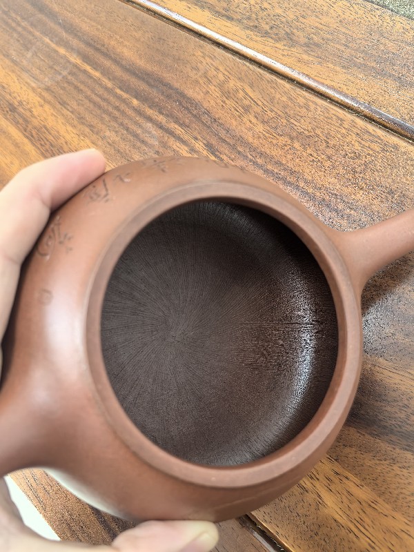 根据图片推墙内里初步判断,此为半手工壶,底款为”赵孟君制“,泥料应为底槽清,属实用器。