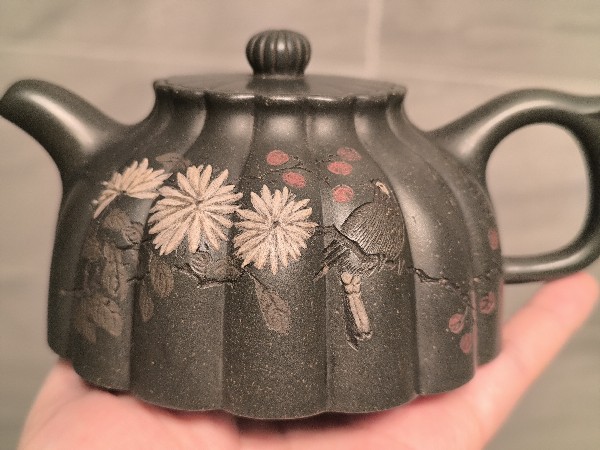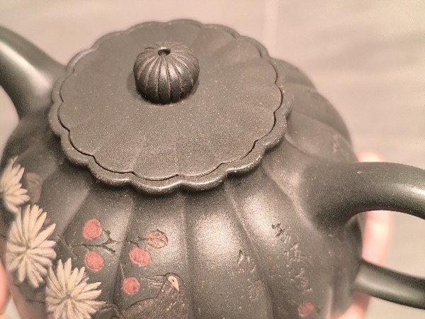 任淦庭(1888.8-1969.12)又名干庭,字缶硕,根据泥料成色及装饰判断,此为新仿品,到不了那个年代。
