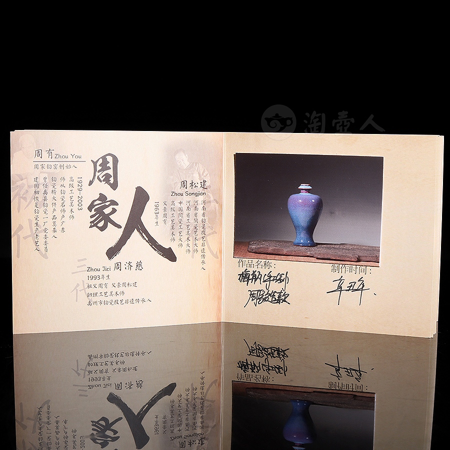 周松建,又名周剑,1963年出生身于制瓷世家,河南省工艺美术大师、河南省陶瓷艺术大师,河南省钧瓷烧制技艺非物质遗产项目代表传承人,其父是著名钧瓷艺人周有。1982年进入禹县钧瓷一厂工作,从事钧瓷的制作和烧成。周松建在鹦哥绿的基础上,加入其他矿物,研制出了以鹦哥绿为基础色调,绿中透红,红色斑驳的釉色,并命名为“翡翠飘红”。他的作品造型大气美观,釉色独特,其作品先后被人民大会堂、全国政协、毛主席纪念堂、全国妇女联合会收藏。他烧制的钧瓷作品《怀柔天下》更是被选为国礼,赠送给联合国副秘书长阿沙罗斯米基罗。