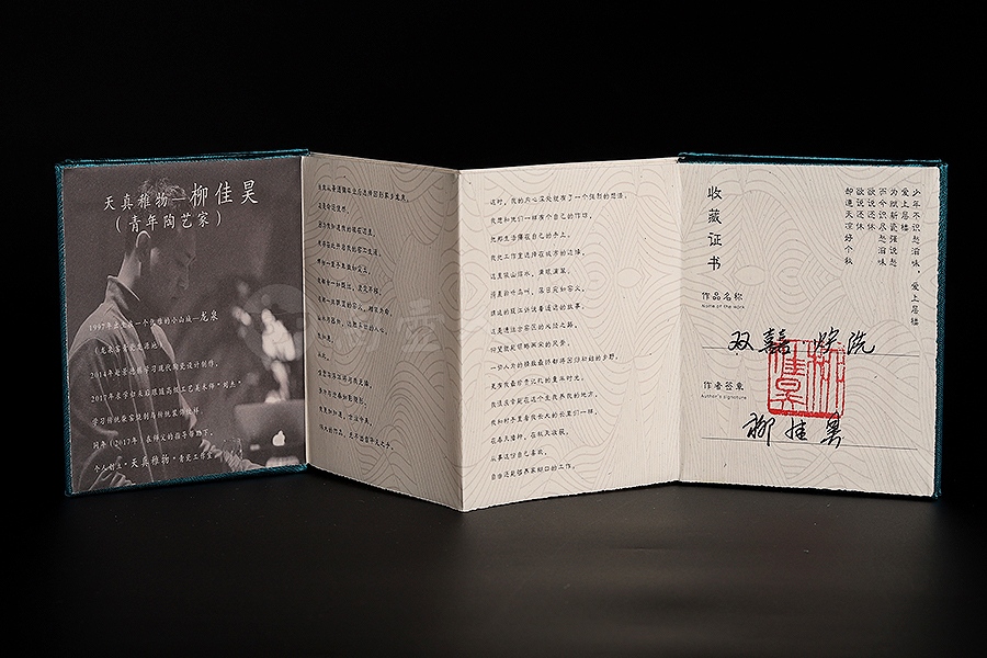 柳佳昊,男,1997年生于浙江龙泉,2014年毕业于龙泉中职校青瓷专业,同年赴景德镇学习现代陶瓷设计制作。2017年求学归来,跟随刘杰学习传统柴窑烧制技艺,同年在师傅刘杰的帮助下创办个人工作室“天真稚物”。作品古朴自然,明净简洁。以古瓷标本为师,潜心研习釉水与烧制工艺。