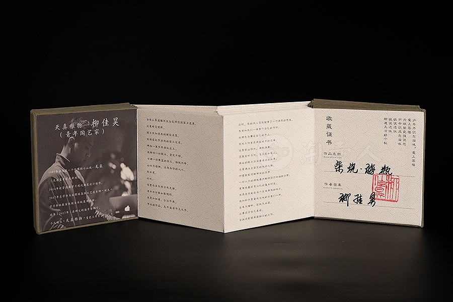 柳佳昊,男,1997年生于浙江龙泉,2014年毕业于龙泉中职校青瓷专业,同年赴景德镇学习现代陶瓷设计制作。2017年求学归来,跟随刘杰学习传统柴窑烧制技艺,同年在师傅刘杰的帮助下创办个人工作室“天真稚物”。作品古朴自然,明净简洁。以古瓷标本为师,潜心研习釉水与烧制工艺。