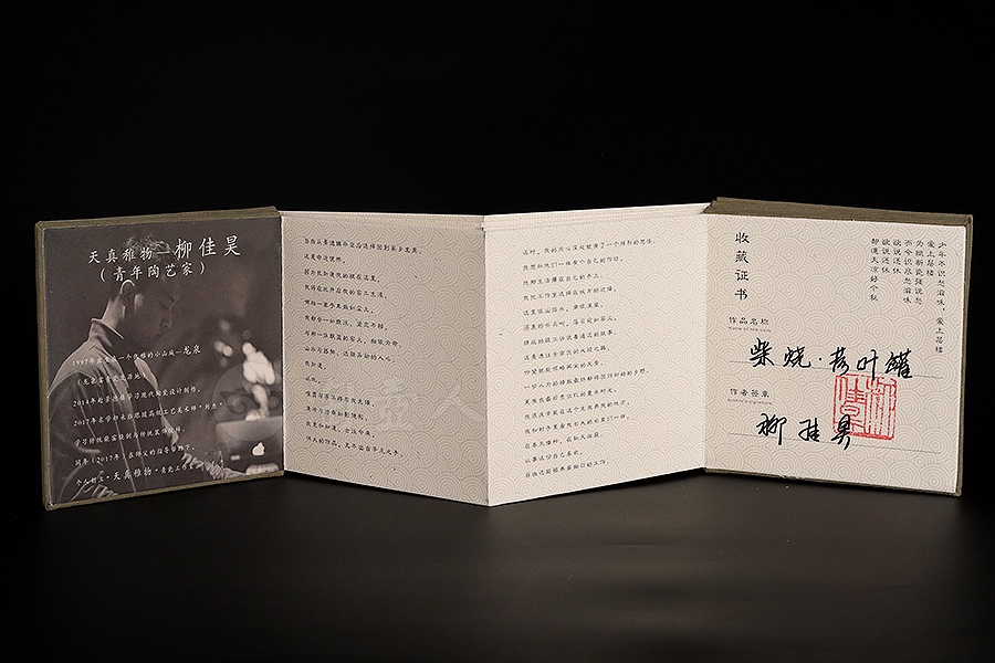 柳佳昊,男,1997年生于浙江龙泉,2014年毕业于龙泉中职校青瓷专业,同年赴景德镇学习现代陶瓷设计制作。2017年求学归来,跟随刘杰学习传统柴窑烧制技艺,同年在师傅刘杰的帮助下创办个人工作室“天真稚物”。作品古朴自然,明净简洁。以古瓷标本为师,潜心研习釉水与烧制工艺。