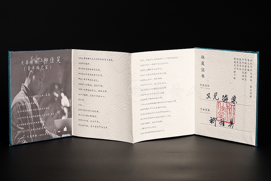 柳佳昊,男,1997年生于浙江龙泉,2014年毕业于龙泉中职校青瓷专业,同年赴景德镇学习现代陶瓷设计制作。2017年求学归来,跟随刘杰学习传统柴窑烧制技艺,同年在师傅刘杰的帮助下创办个人工作室“天真稚物”。作品古朴自然,明净简洁。以古瓷标本为师,潜心研习釉水与烧制工艺。