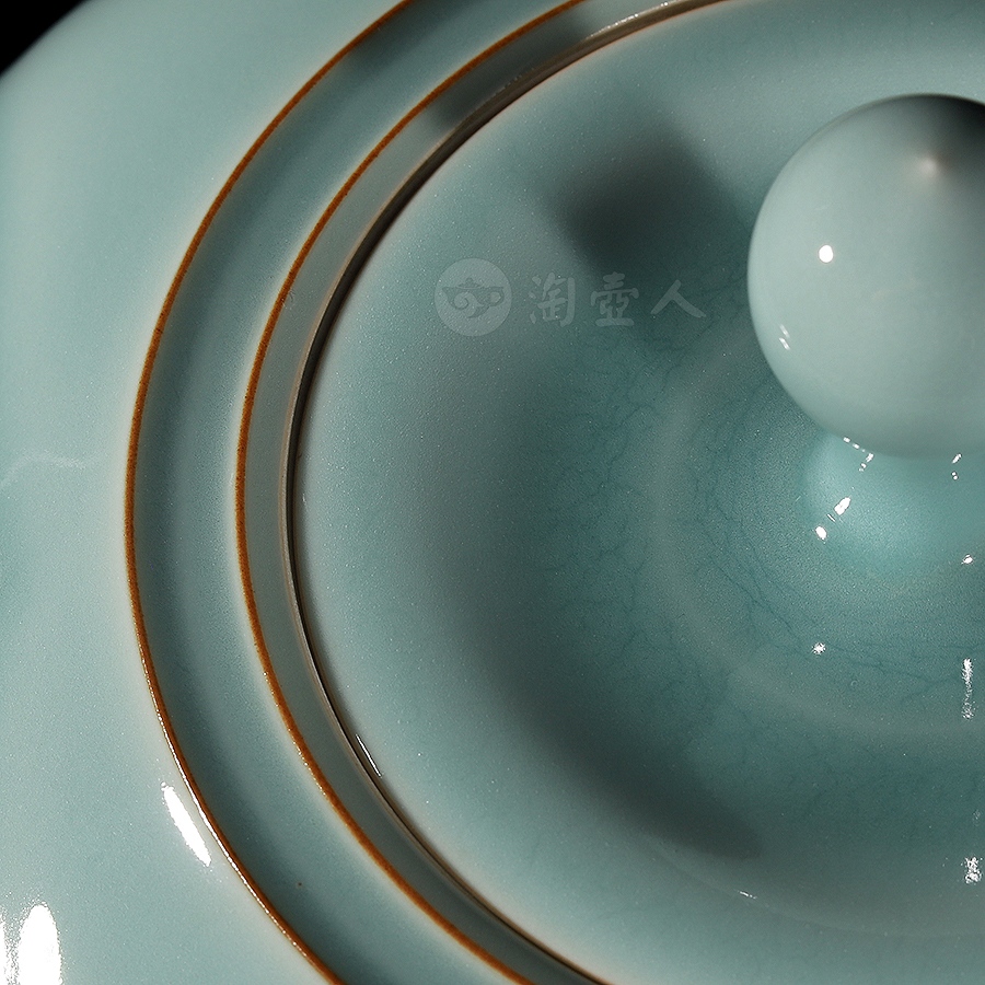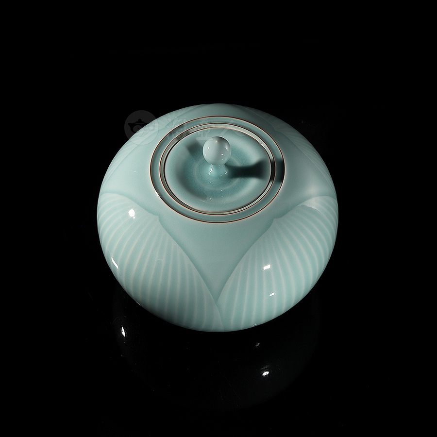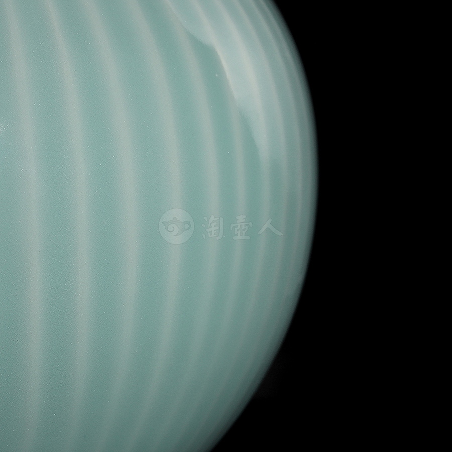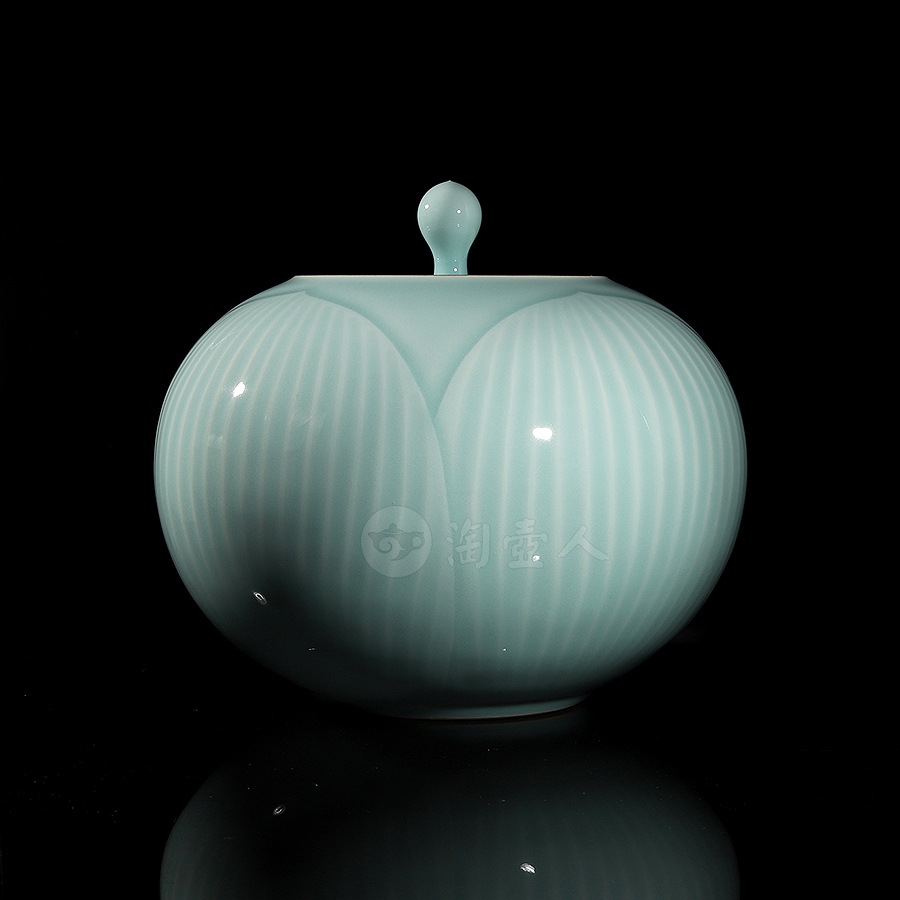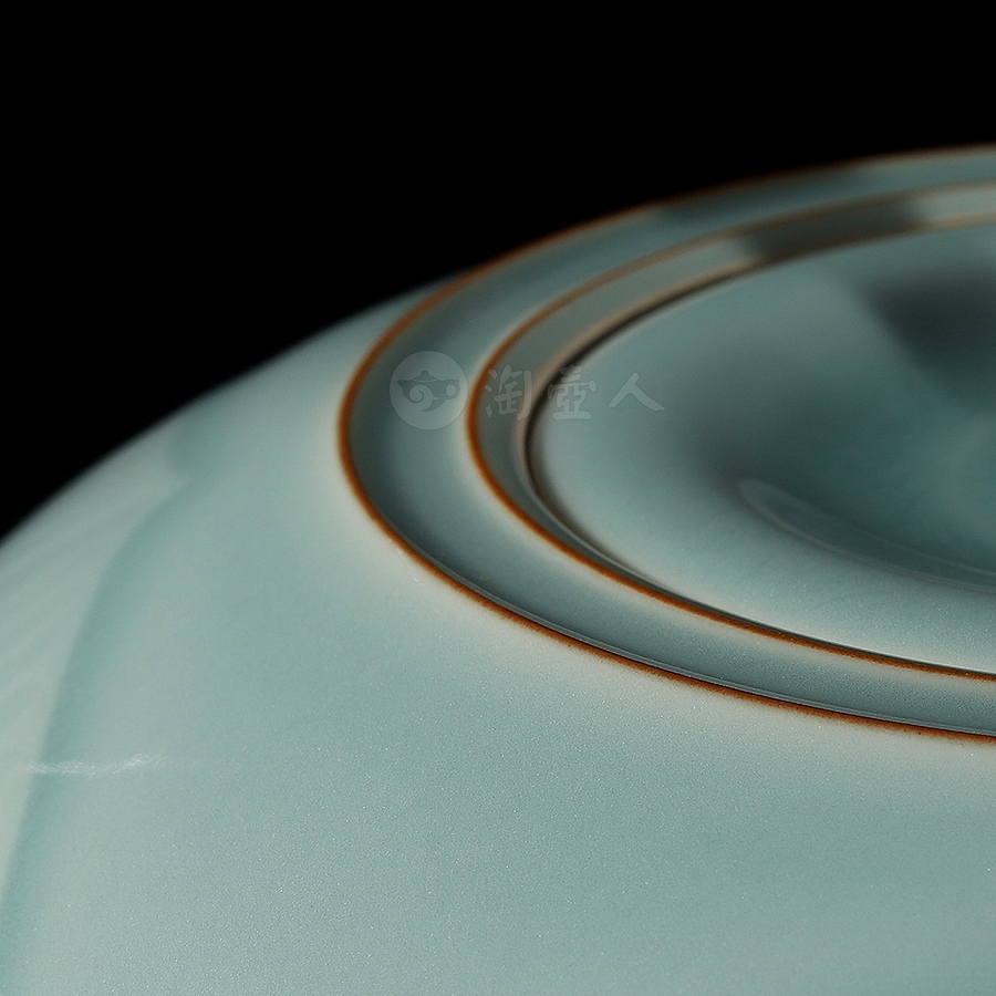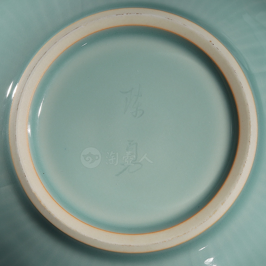 此件《雨后·荷》,为朱砂胎施粉青釉,釉色青绿淡雅,釉面光泽柔和,达到类玉的效果,为青釉中最佳色调之一。器身圆鼓饱满,外壁精心修饰出四片莲瓣,纹理清晰明朗,匀净的釉色使整器恰如雨后荷花,一洗淤泥与尘埃,显得更加清新鲜亮。
