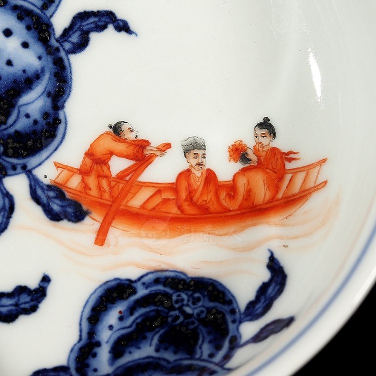 首页 品茗杯 梁峻制《青花矾红桃渡雅集杯》