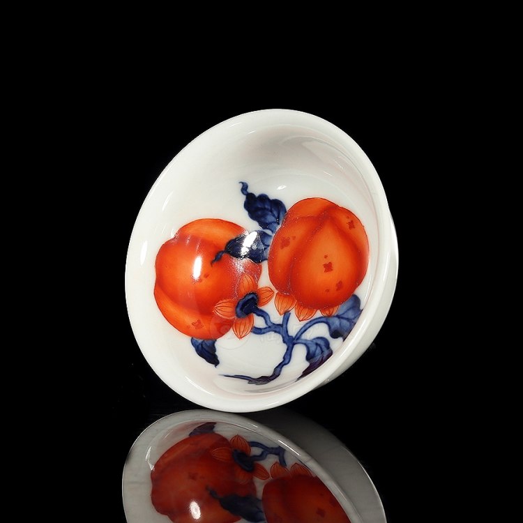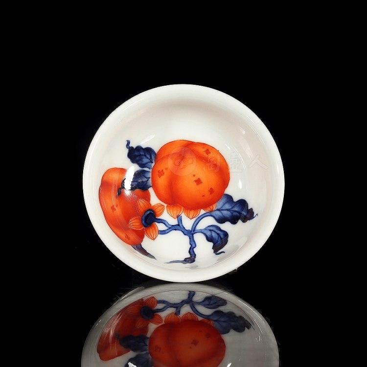首页 景德窑 梁峻制《青花矾红柿子杯》