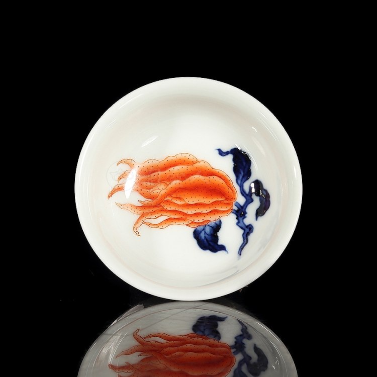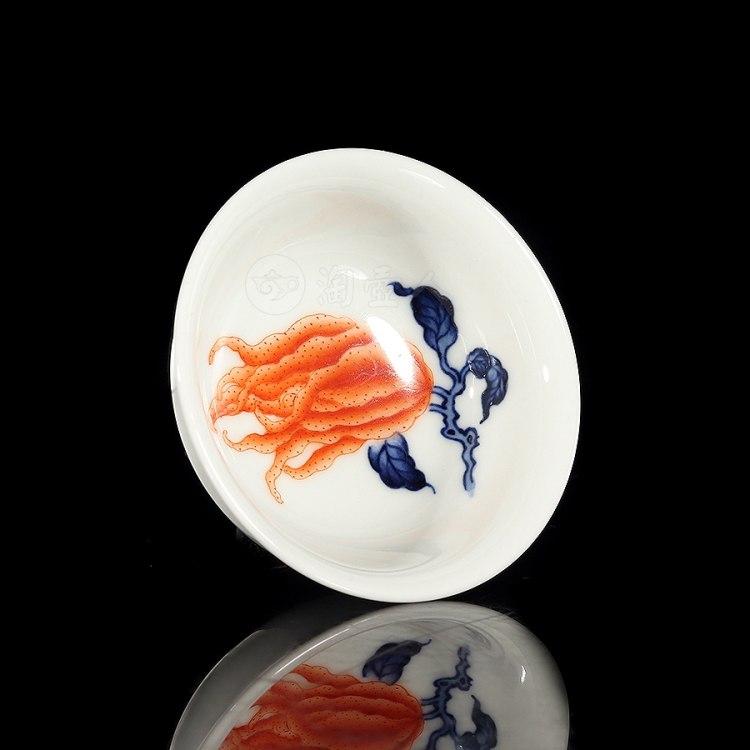 首页 景德窑 梁峻制《青花矾红佛手杯》