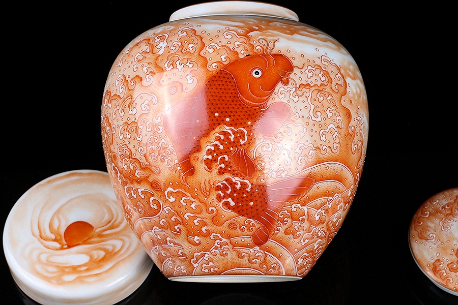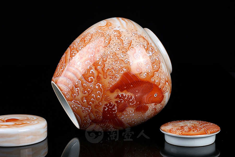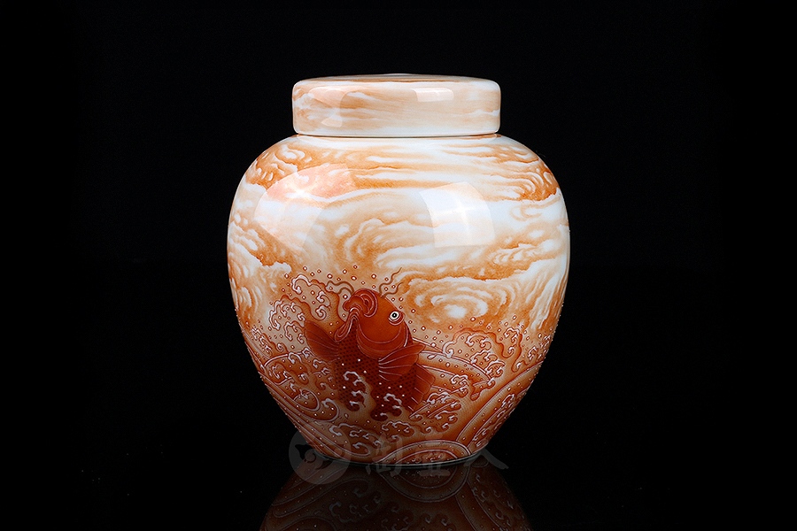 首页 景德窑 淘壶人定制款鱼跃龙门茶叶罐