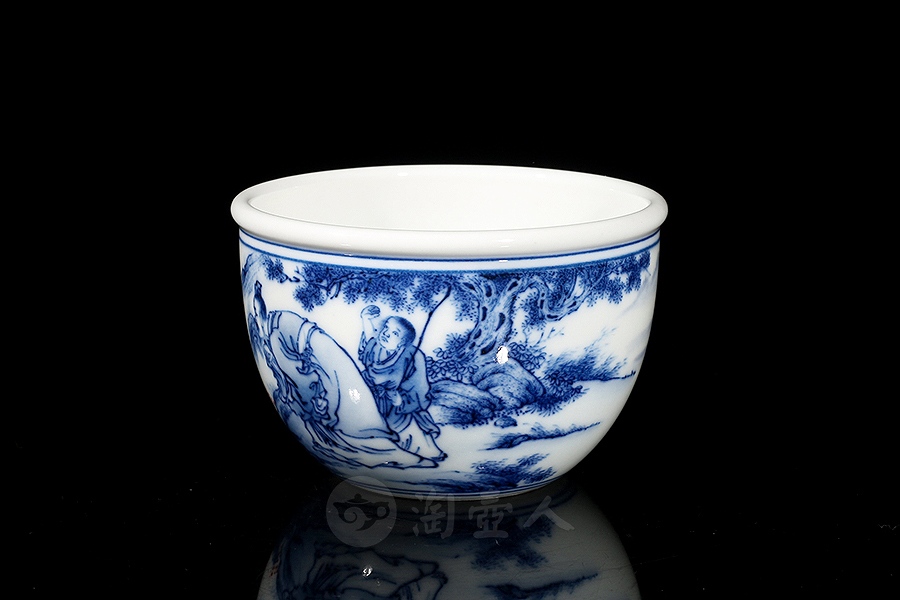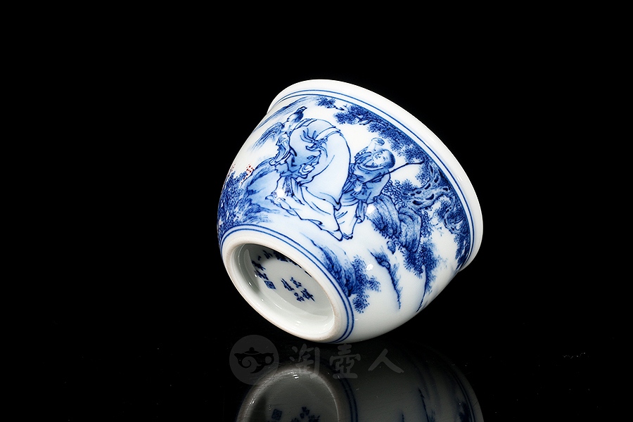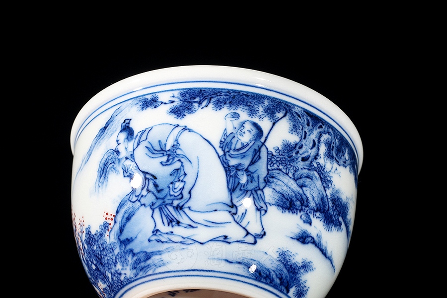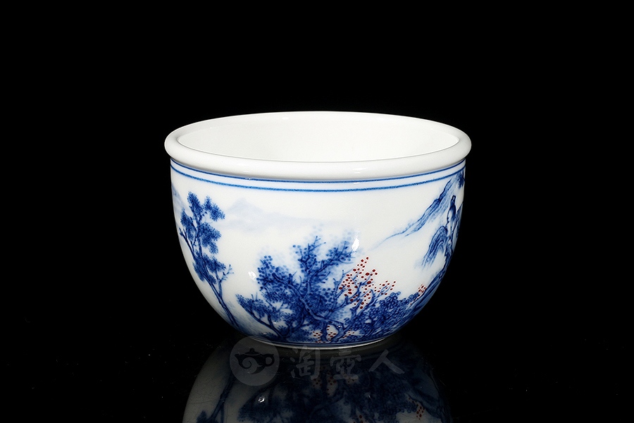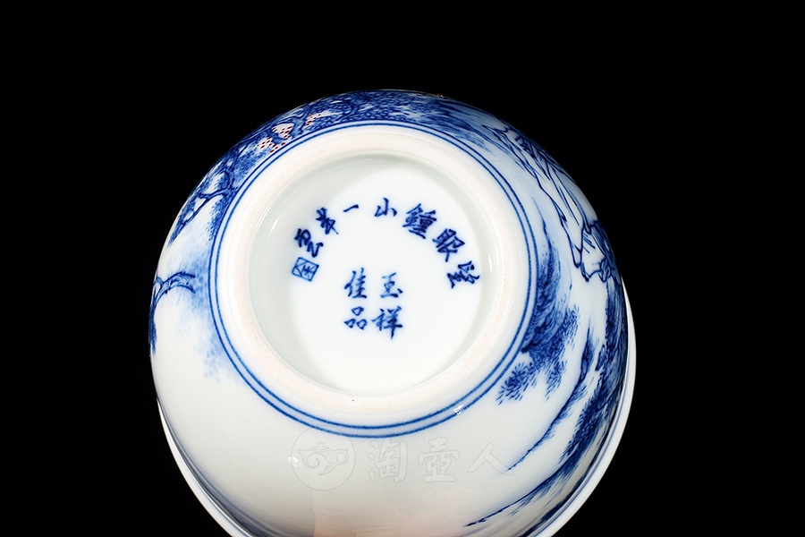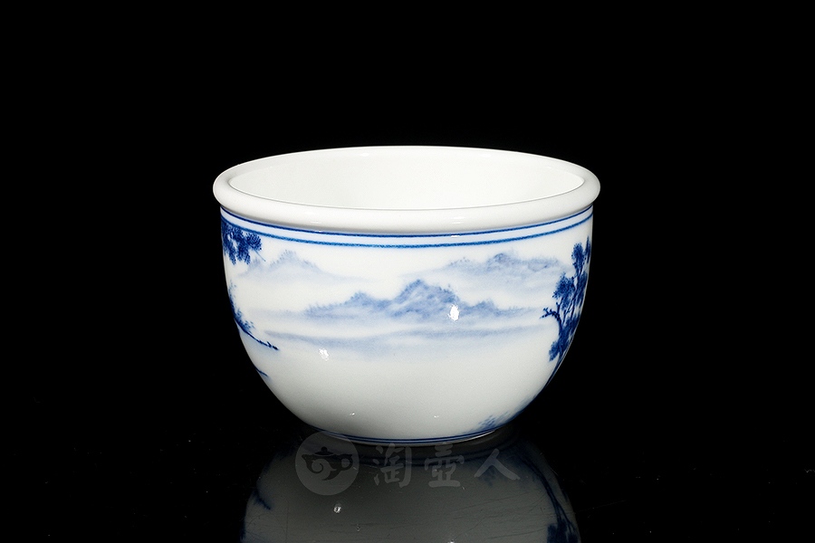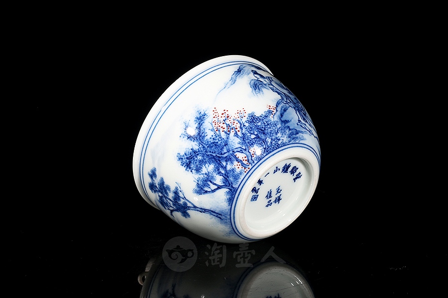 余建绘制柴窑望眼鐘山一半云杯