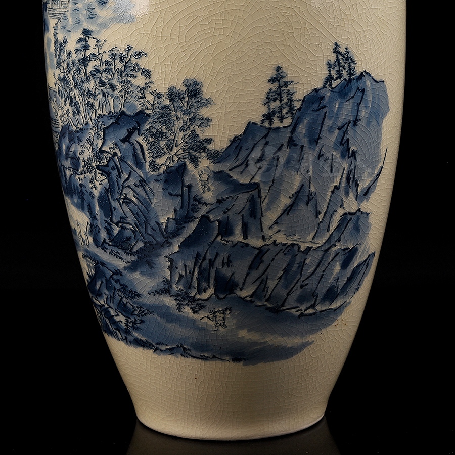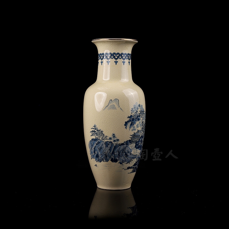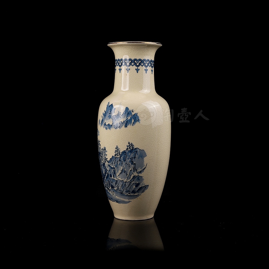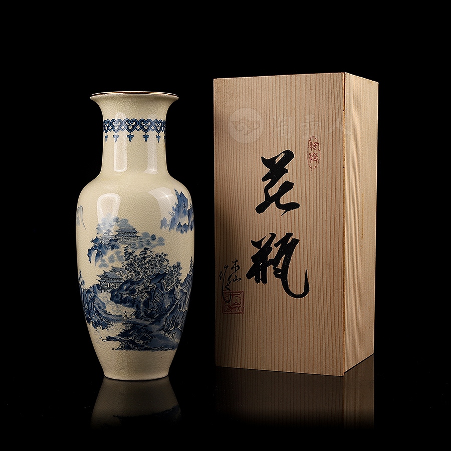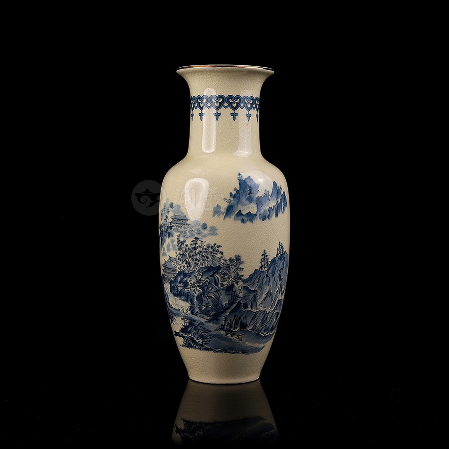 首页 景德窑 民间艺人制《如意纹山水花瓶》