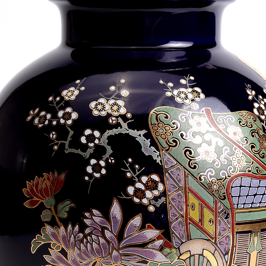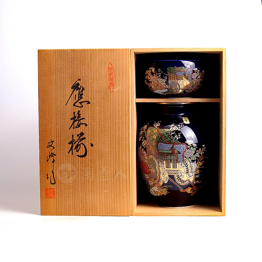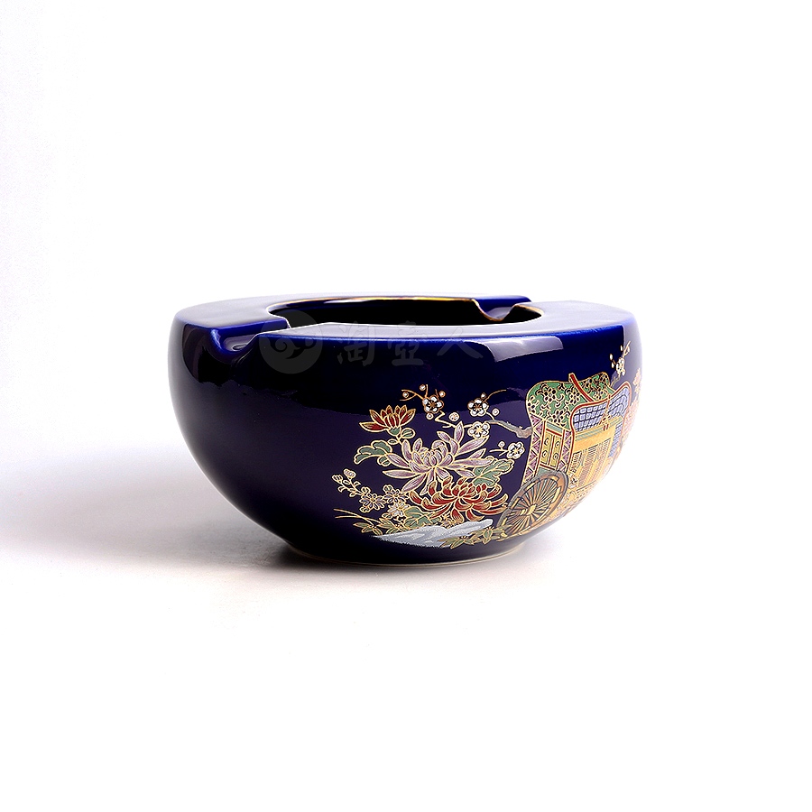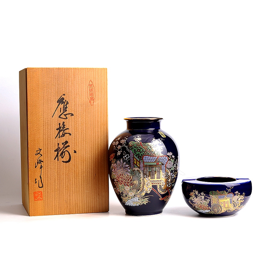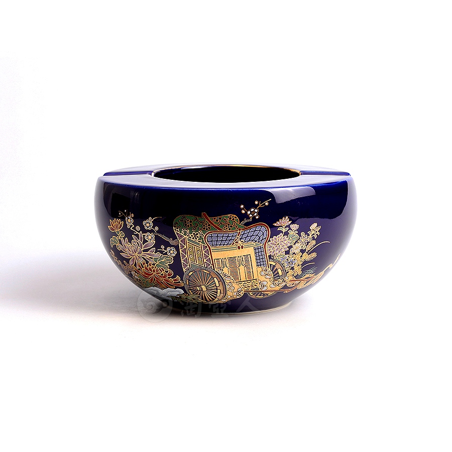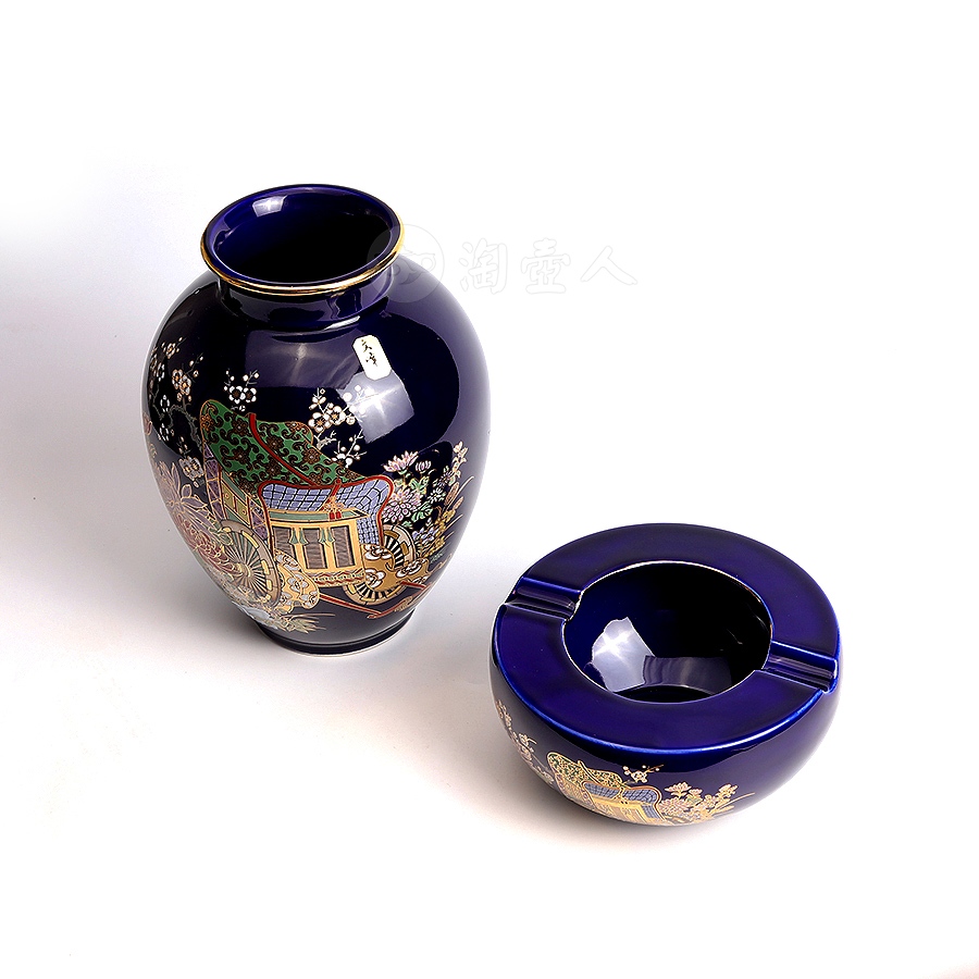 首页 景德窑 民间艺人制《霁蓝釉描金赏瓶 烟皿》