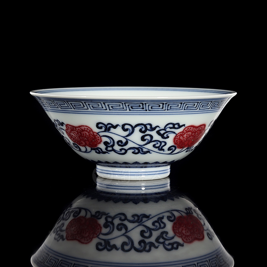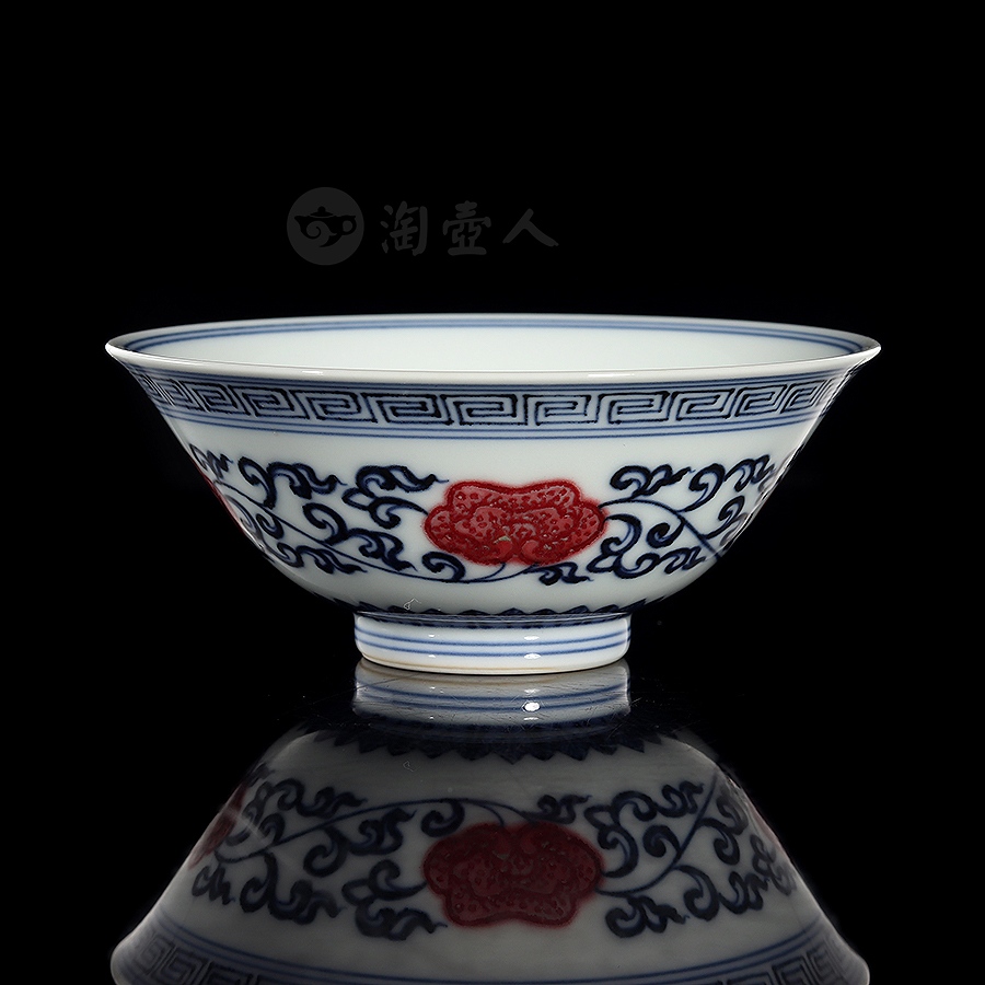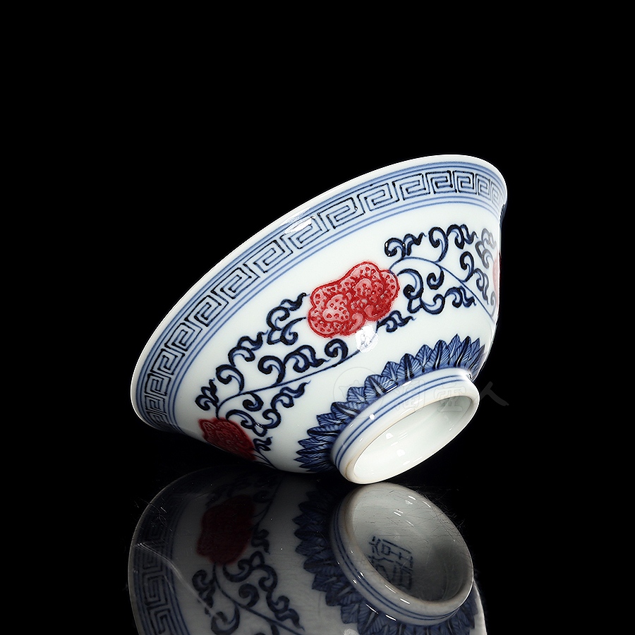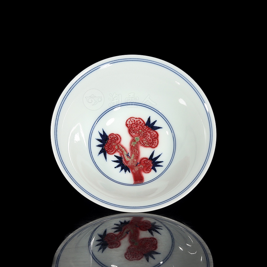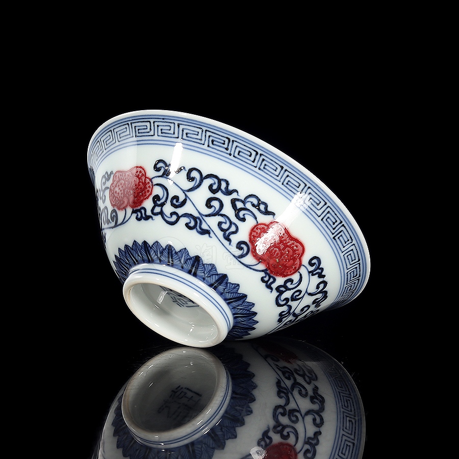 青花之雅,恰能弥补釉里红呈色层次变化的细微不足,釉里红之艳,又为青花瓷的素净增添了鲜活色彩。二者相融相生,青如远山含黛,红似丹枫映霞,清雅与妖娆并存,深沉与热闹共生。最终在这方寸盏身之上,达成幽靓雅致与浑厚壮丽的完美平衡,将中式美学的和谐之境展现得淋漓尽致。