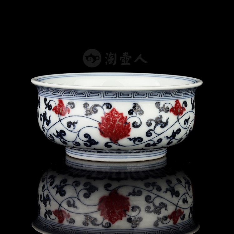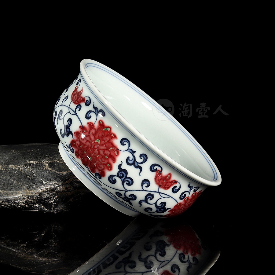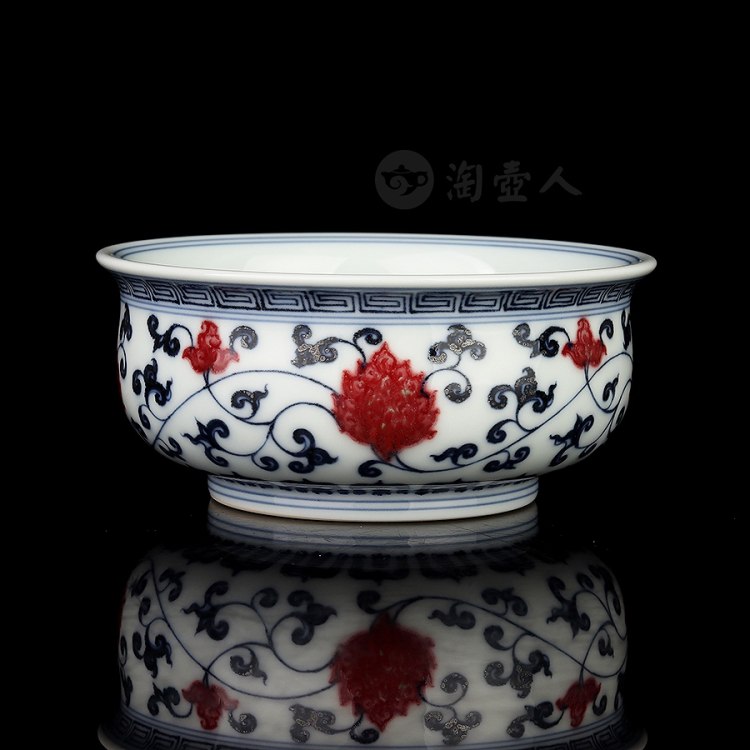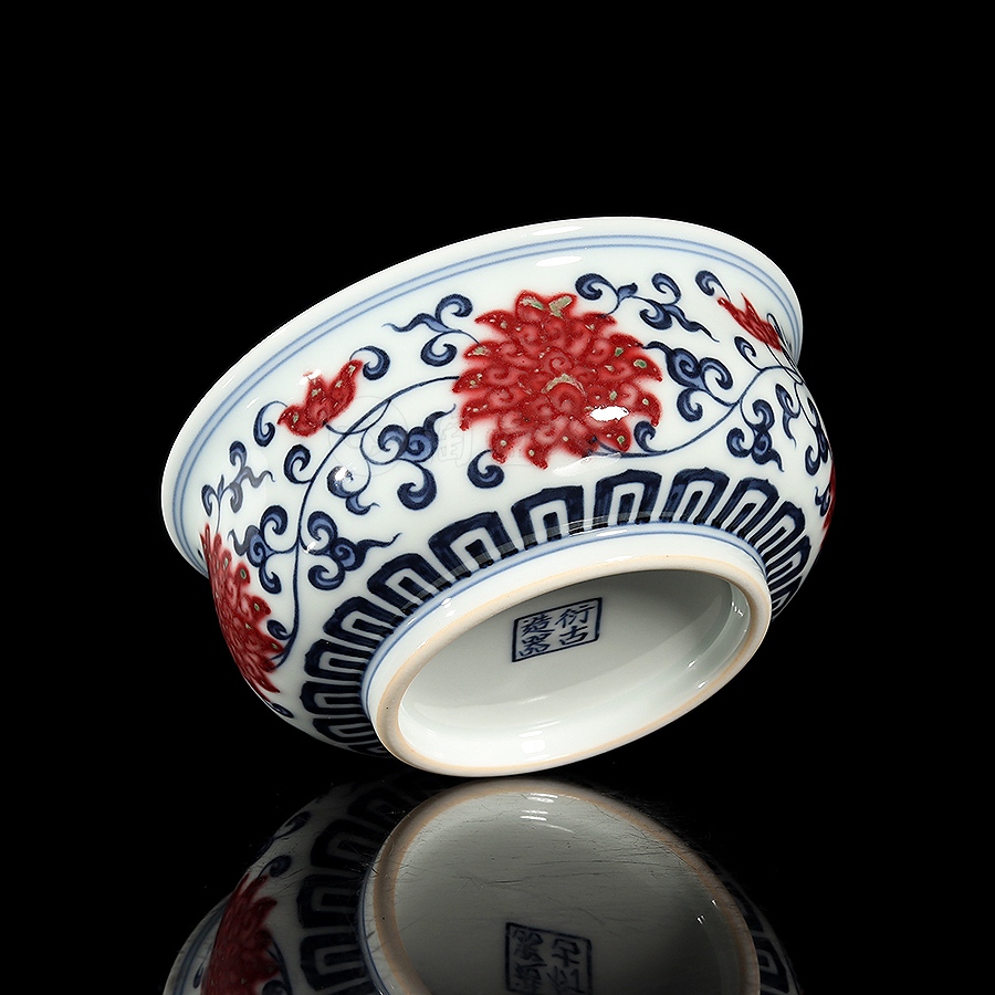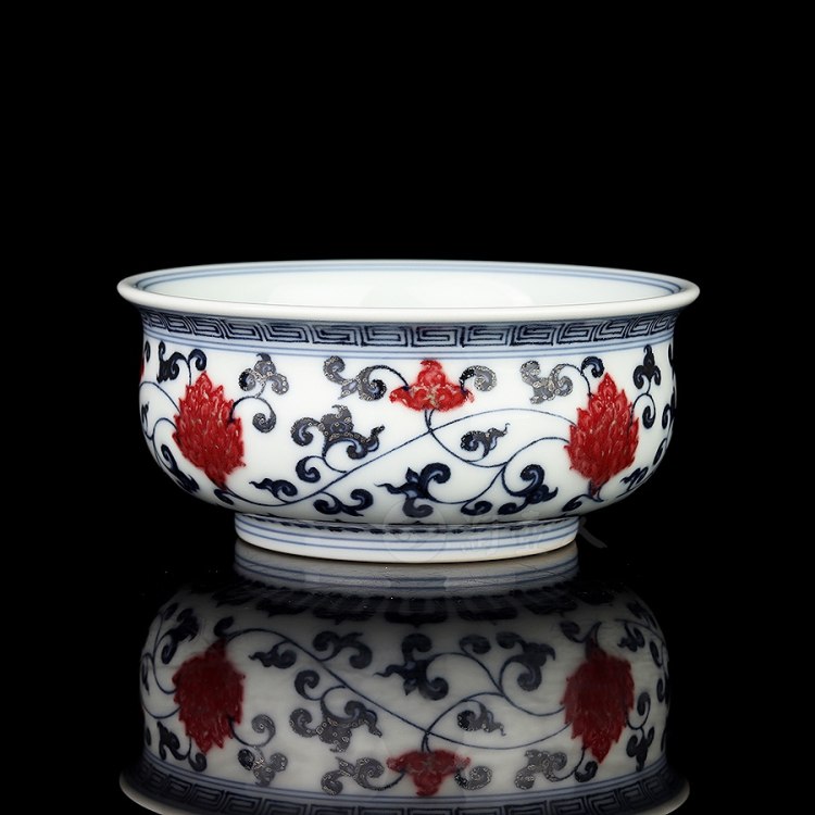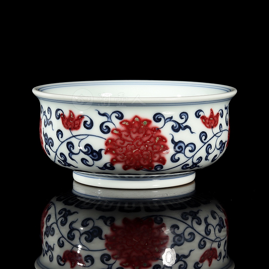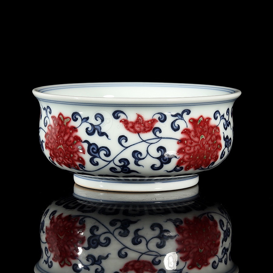首页 景德窑 衍古堂制《炉式杯·青花釉里红缠枝莲》
