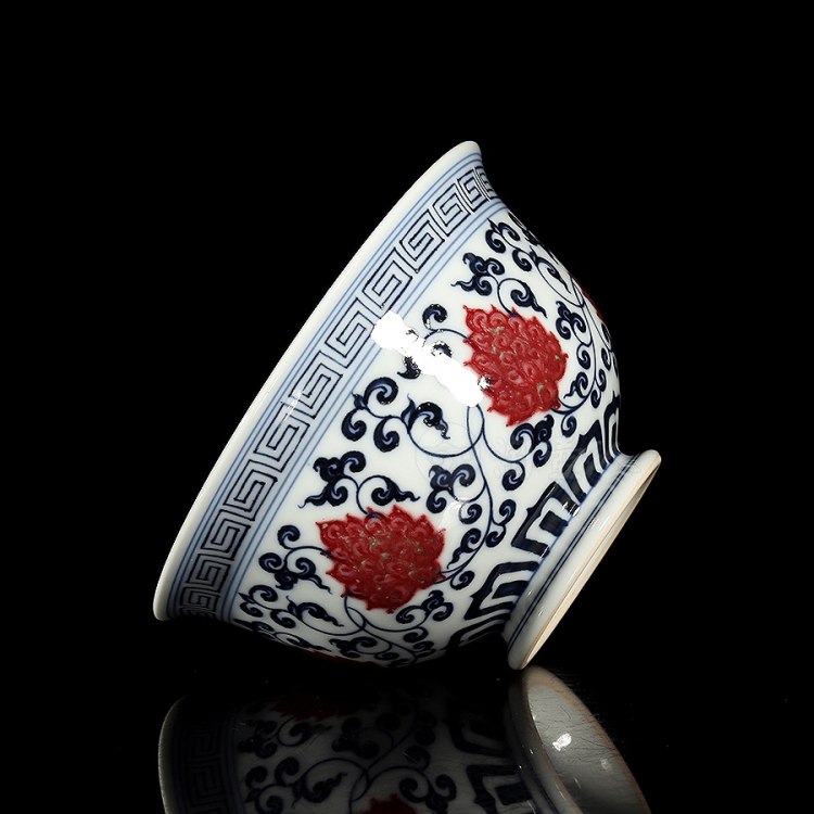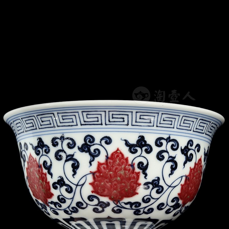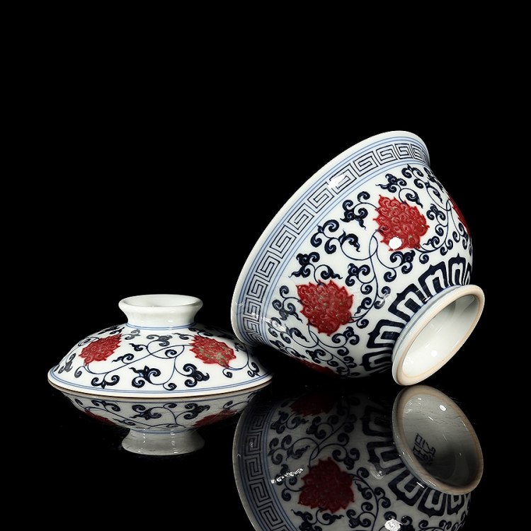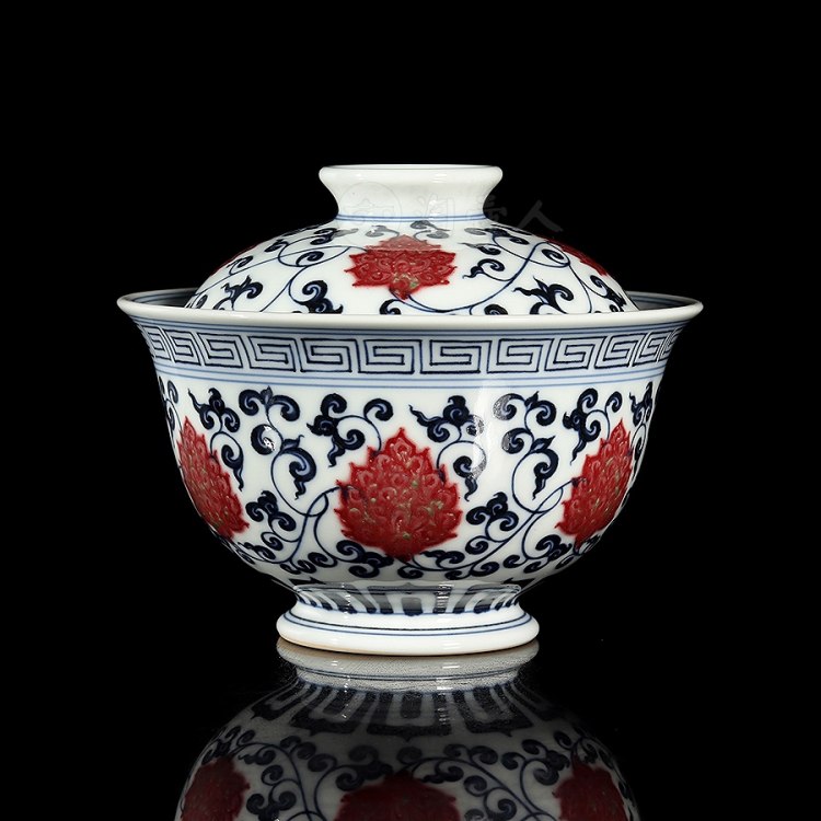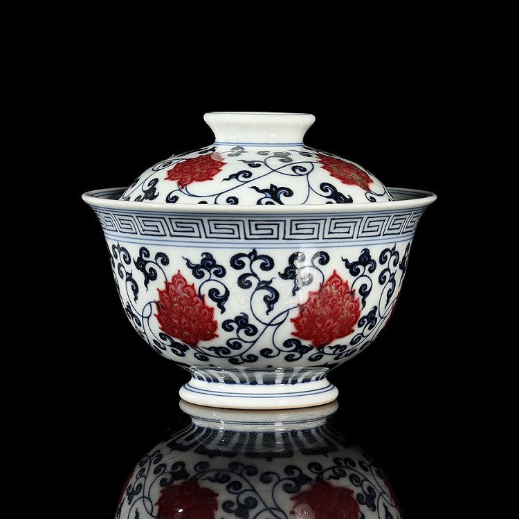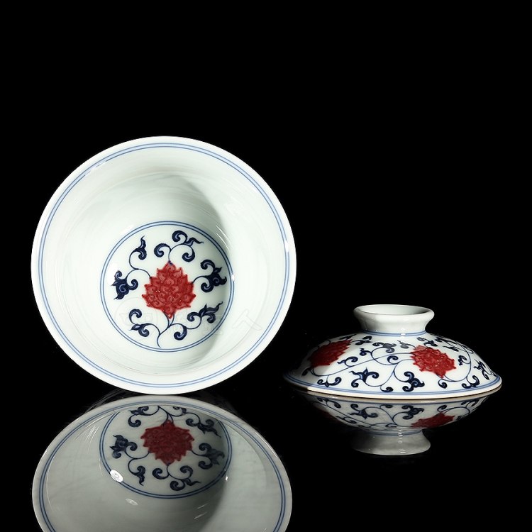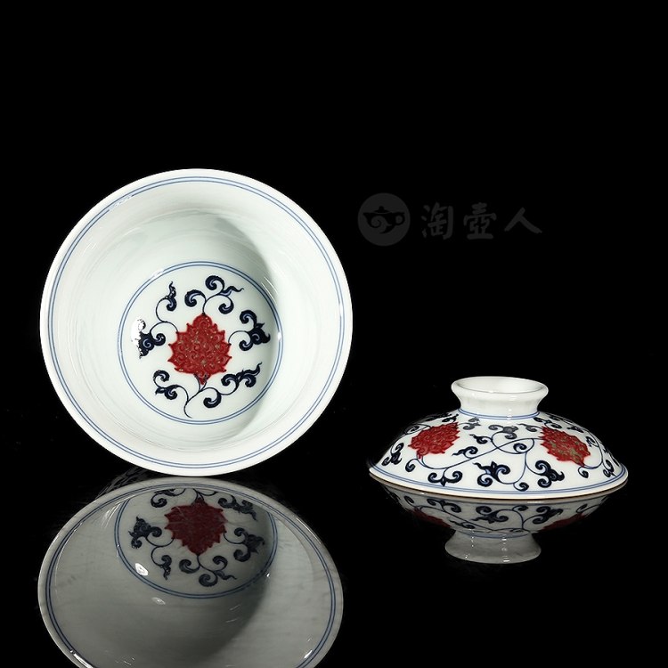 首页 景德窑 衍古堂制《二才盖碗·青花釉里红缠枝莲》