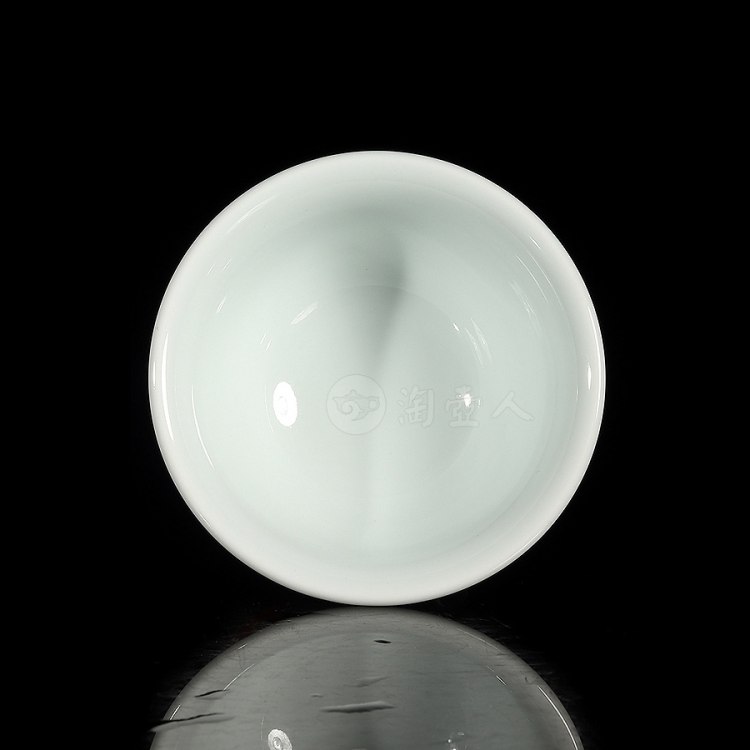 此件压手杯,釉色莹白如玉,釉面光洁细腻,器型规整雅致,撇口微敞,线条柔和舒展,既便于持握,又显端庄大气,杯腹呈圆润弧状,弧度饱满有度,过渡自然流畅,圈足立挺规整,修胎精细,胎质坚致,着地平稳。