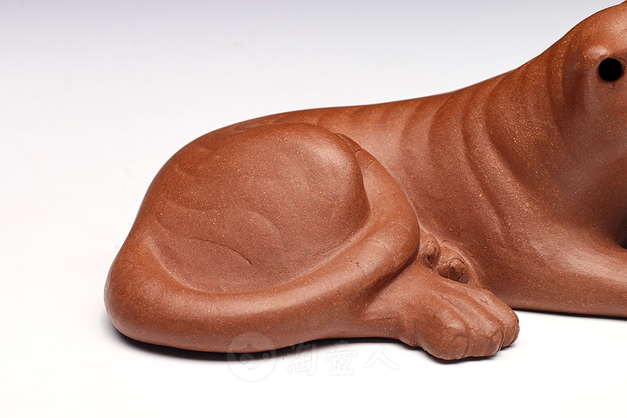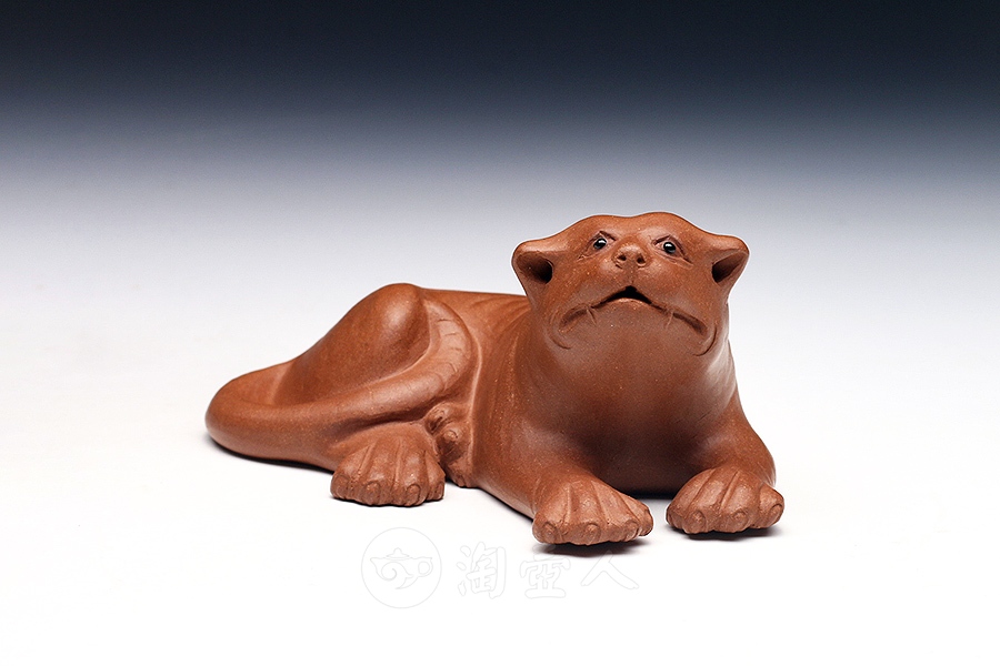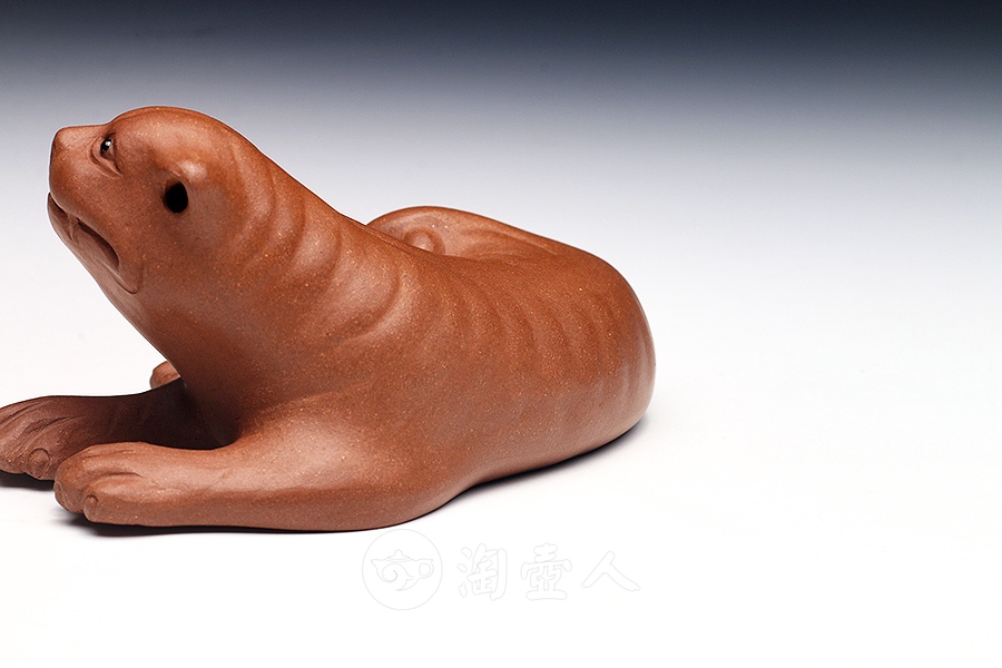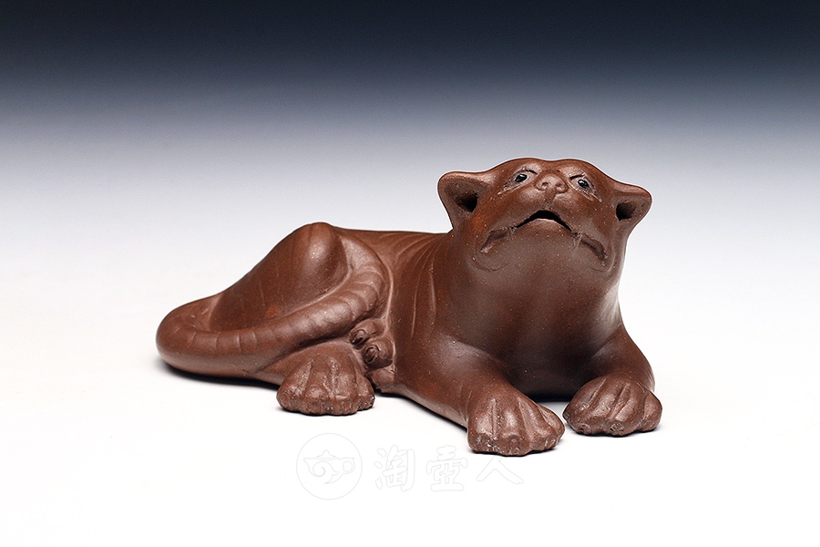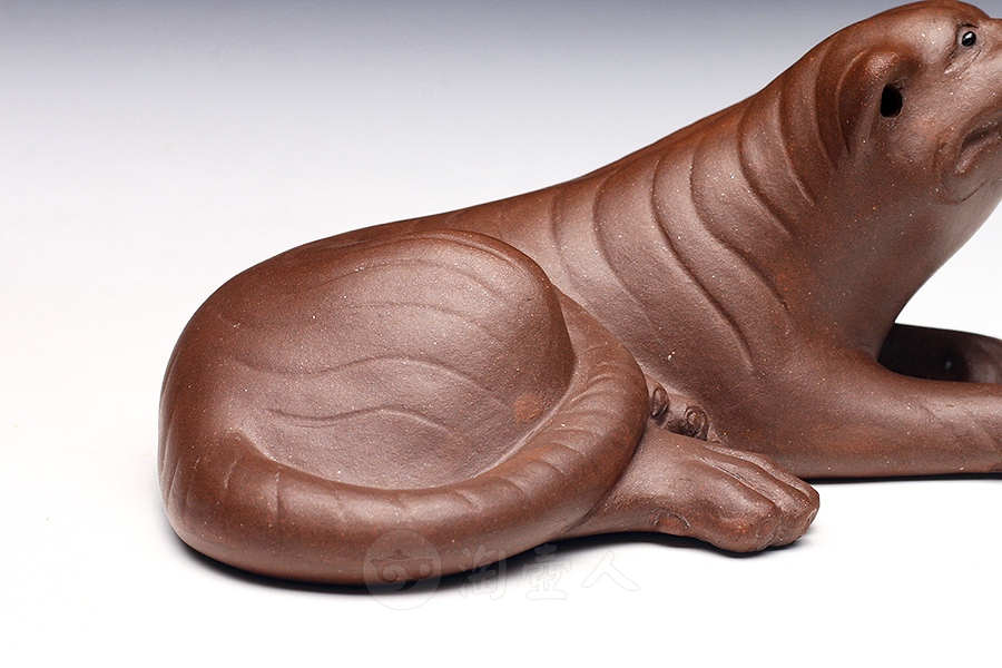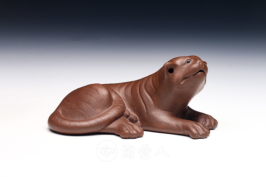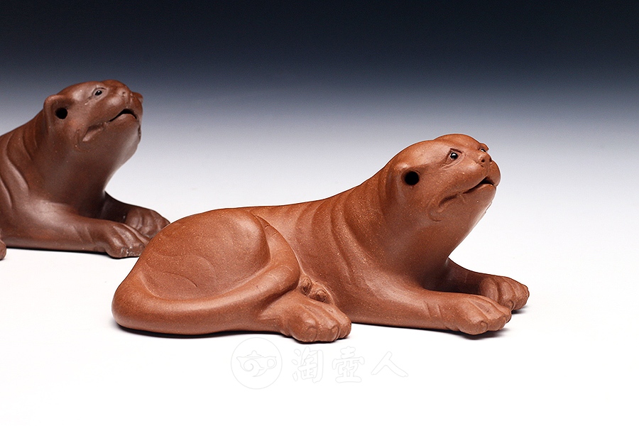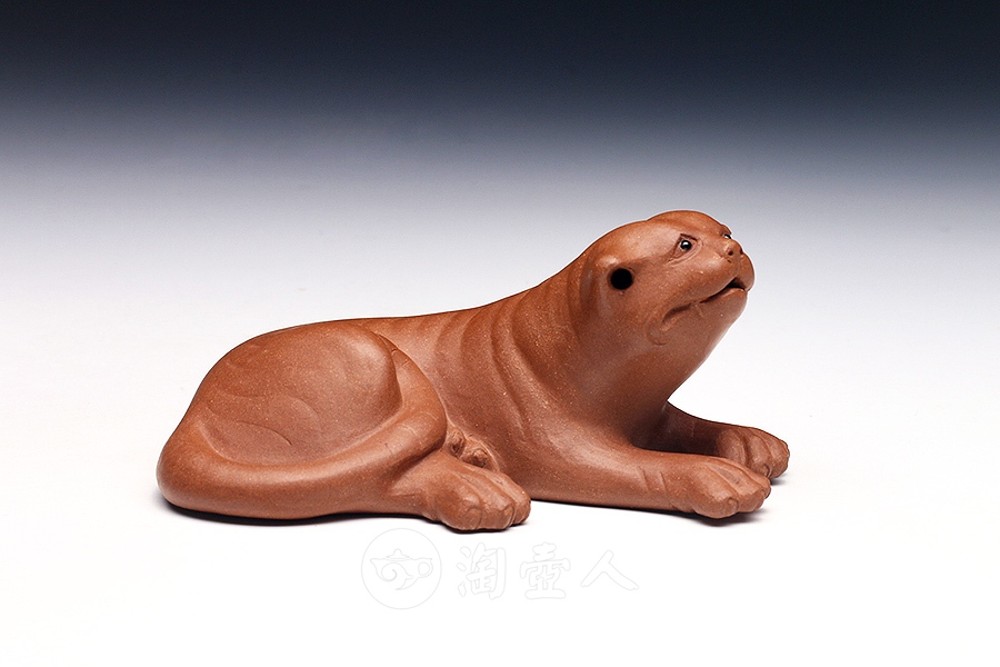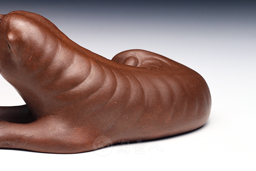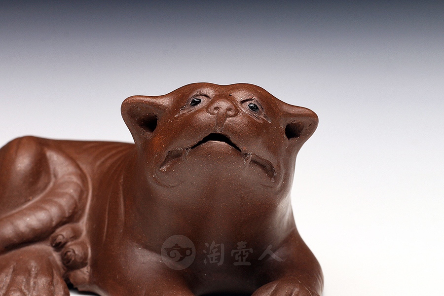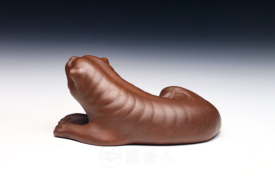 《紫砂陶虎》是七大老艺人之蒋蓉大师创作于上世纪六十年代的紫砂雕塑,此虎雕塑为蒋蓉大师九十年代重制作品,为一对,以老紫泥与降坡泥分别制作成型,虎呈伏卧状,造型憨厚,抬头望人,面目生动可爱,值得品赏收藏。