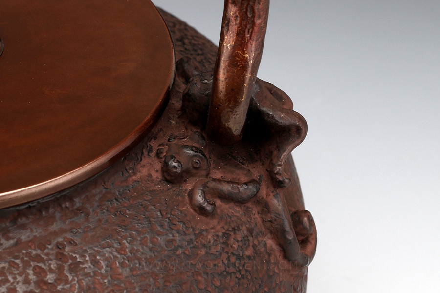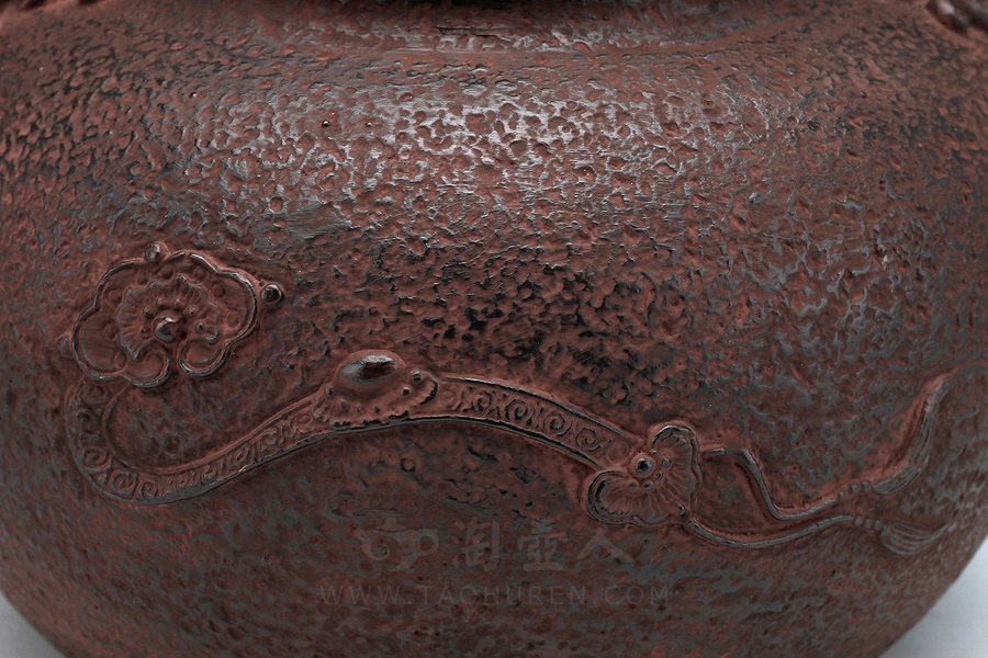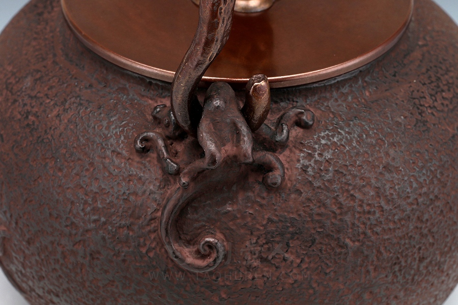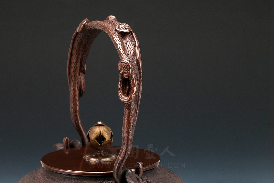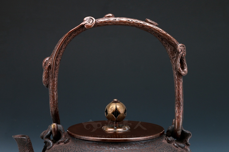 壶盖光滑细腻,色泽精致美观,品味非凡,珠形镂空摘钮,精巧雅致,古韵悠长。壶嘴简约,出水顺畅,断水利落,一个好的壶嘴,需要流水顺畅,断水利落,这是匠人的要求极高,需要10年以上的专业积累。壶型饱满,铁肌古朴厚重,如意纹饰,惟妙惟肖,形身具备,犹如一幅极具艺术美感的古代水墨画,提梁也有如意装饰,隔热性能优越,一片铁块经由千万次手工捶打,卷曲成型,是铁壶制作中最难的一道工序。