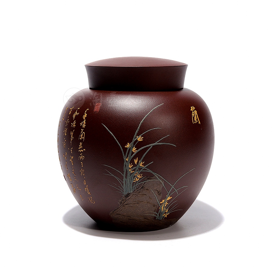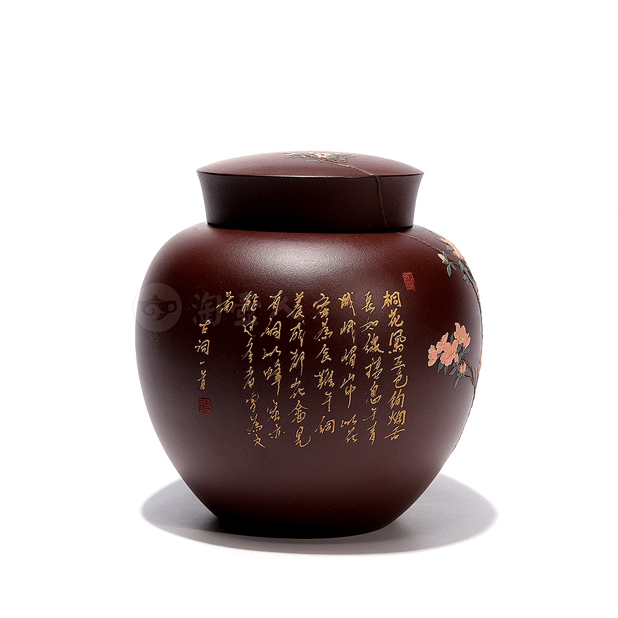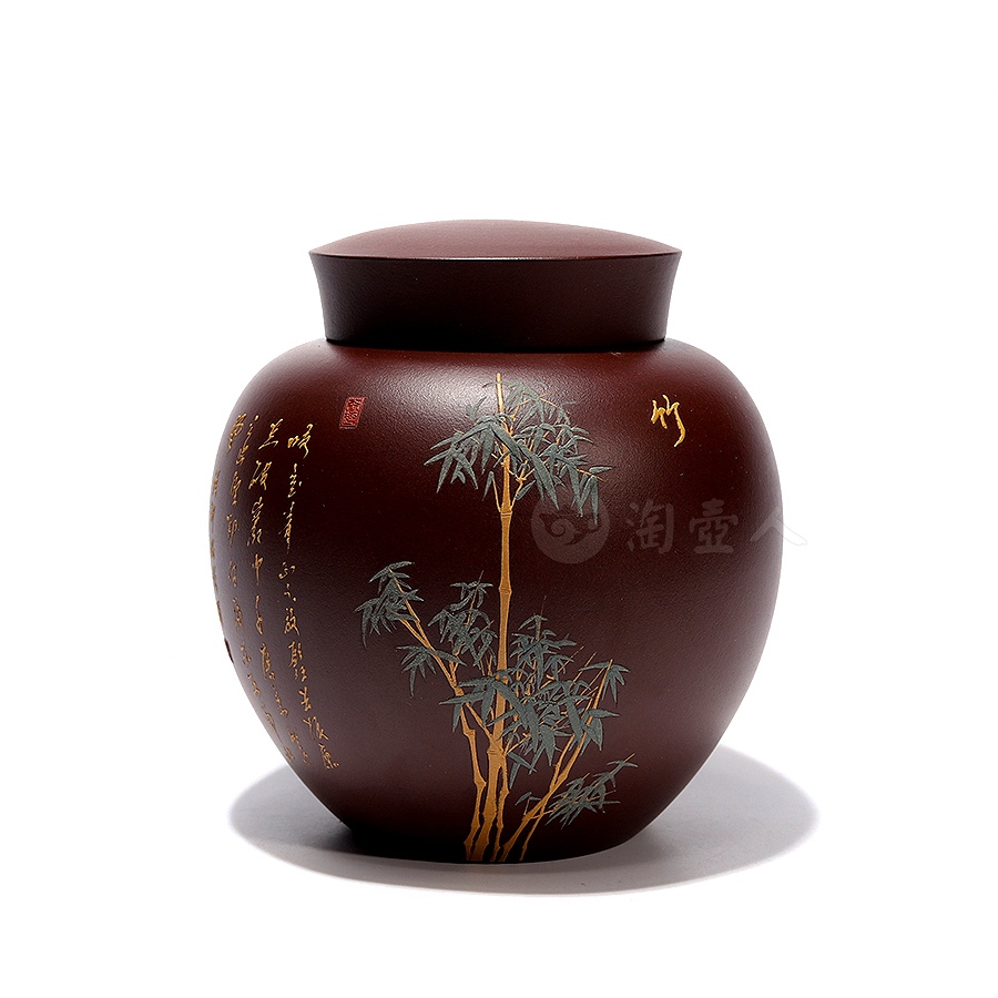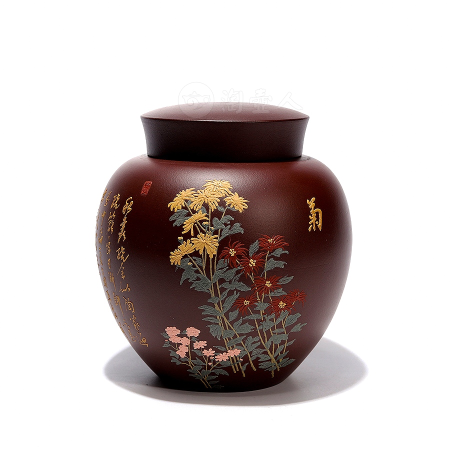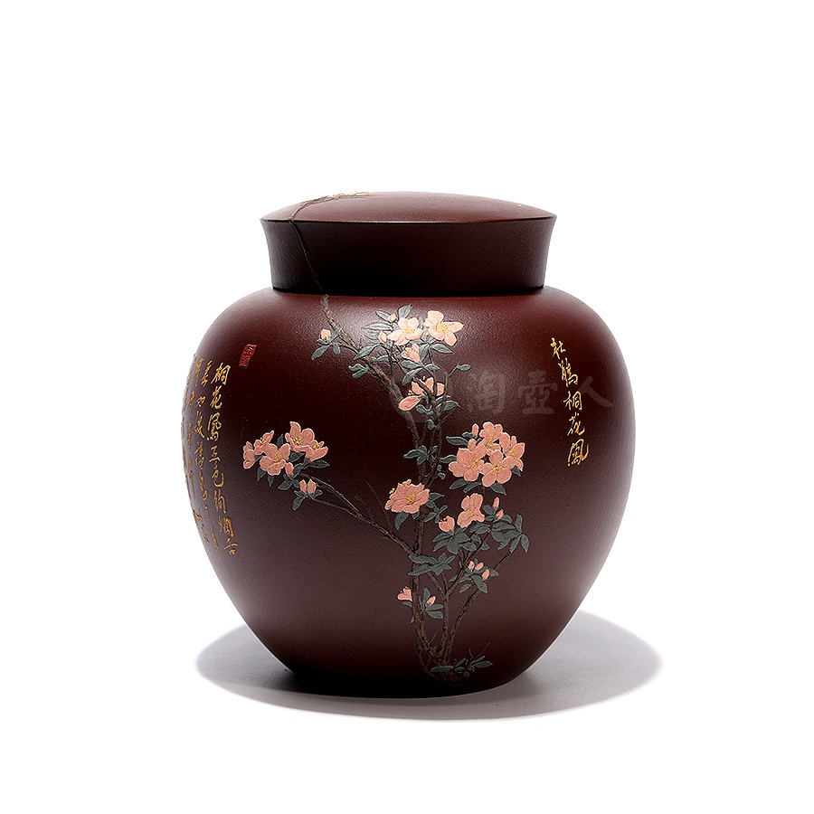 此泥绘醒茶罐为作者采用原矿紫泥精制而成,成色温润,富有润泽之感。形体优美,丰润饱满。作者妙用自己调配的原矿紫砂泥,以梅、兰、竹、菊以及杜鹃桐花为题,在罐面作以泥绘装饰,画面精美绝伦,栩栩如生,气韵生动,尽显高雅,足见作者功力之深厚,性价比极高的泥绘精品,值得入手。