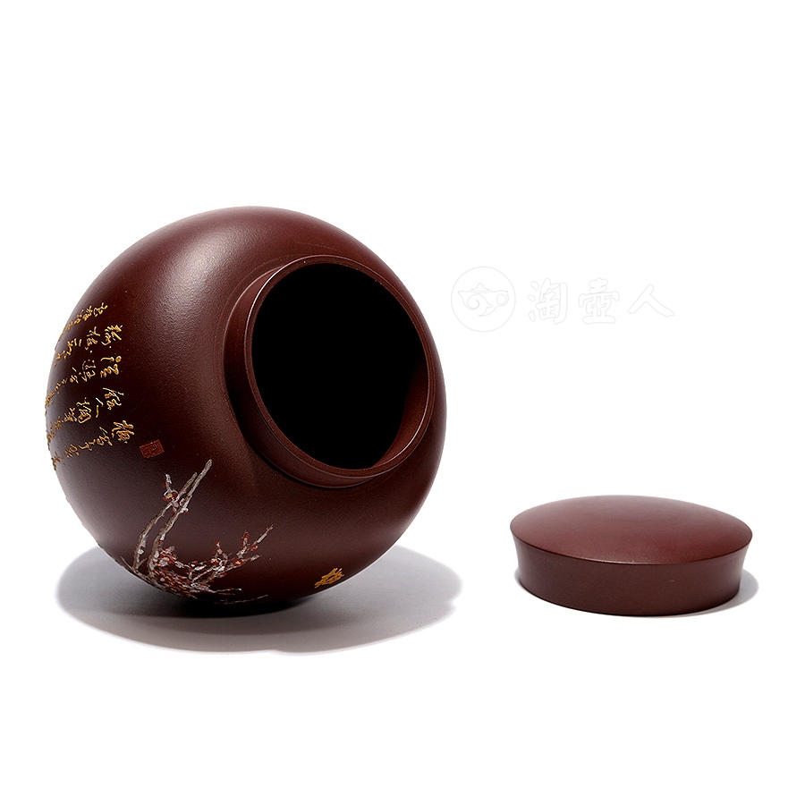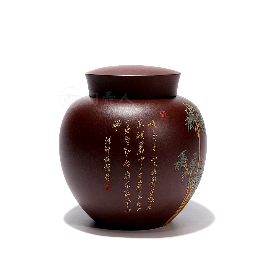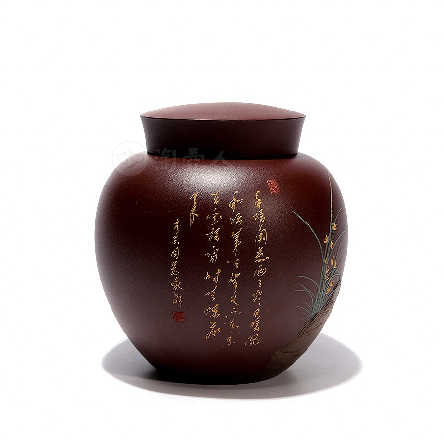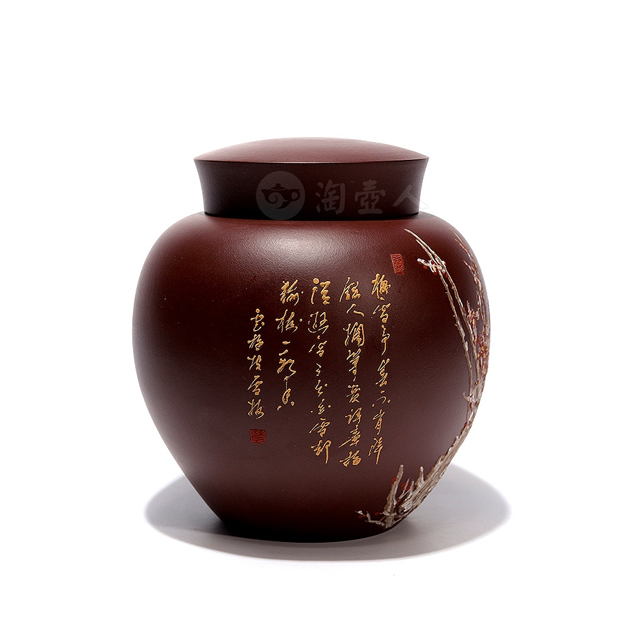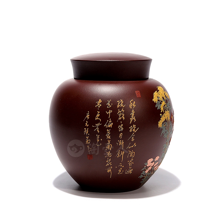 此泥绘醒茶罐为作者采用原矿紫泥精制而成,成色温润,富有润泽之感。形体优美,丰润饱满。作者妙用自己调配的原矿紫砂泥,以梅、兰、竹、菊以及杜鹃桐花为题,在罐面作以泥绘装饰,画面精美绝伦,栩栩如生,气韵生动,尽显高雅,足见作者功力之深厚,性价比极高的泥绘精品,值得入手。